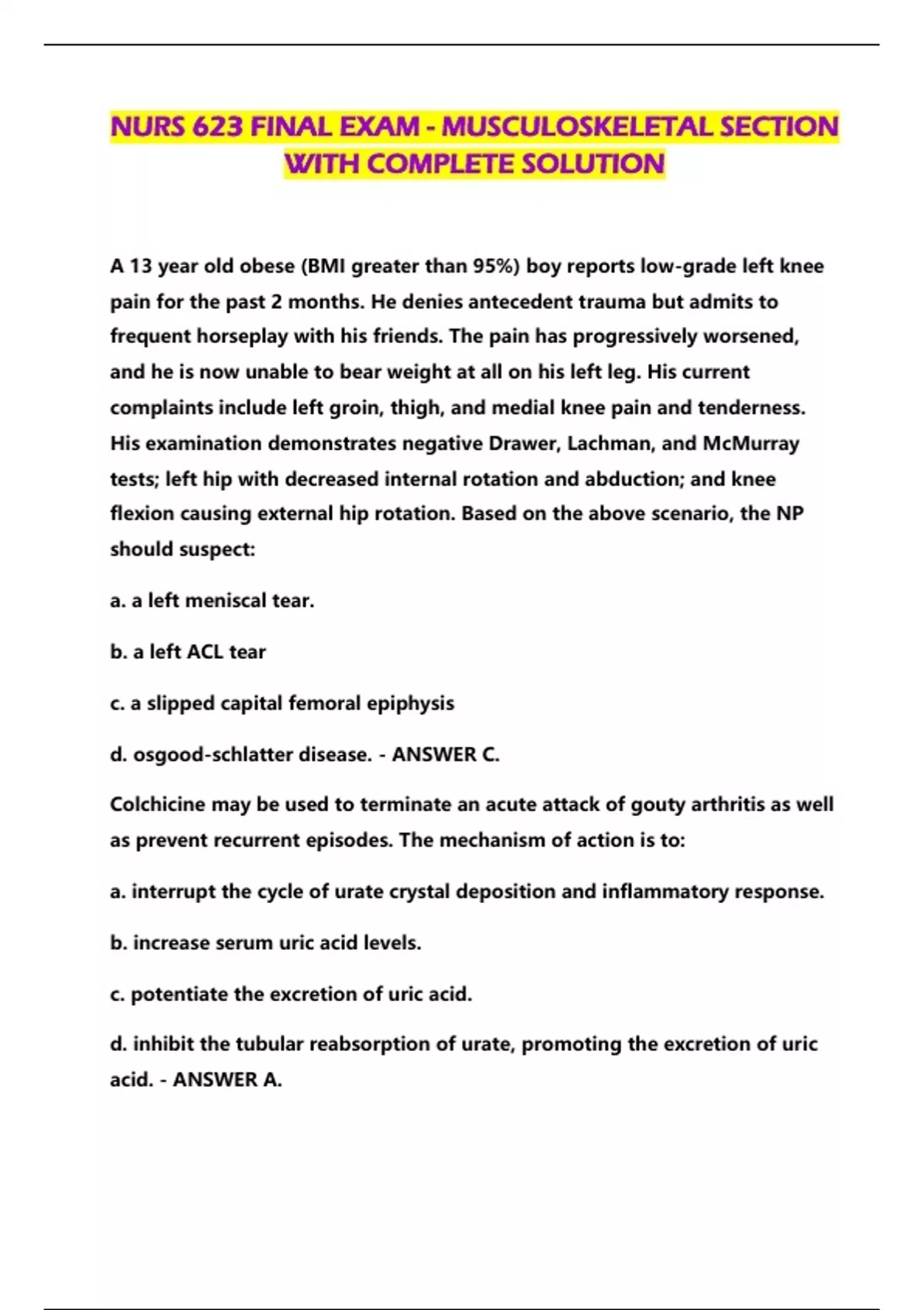 NURS 623 FINAL EXAM - MUSCULOSKELETAL SECTION WITH COMPLETE SOLUTION...