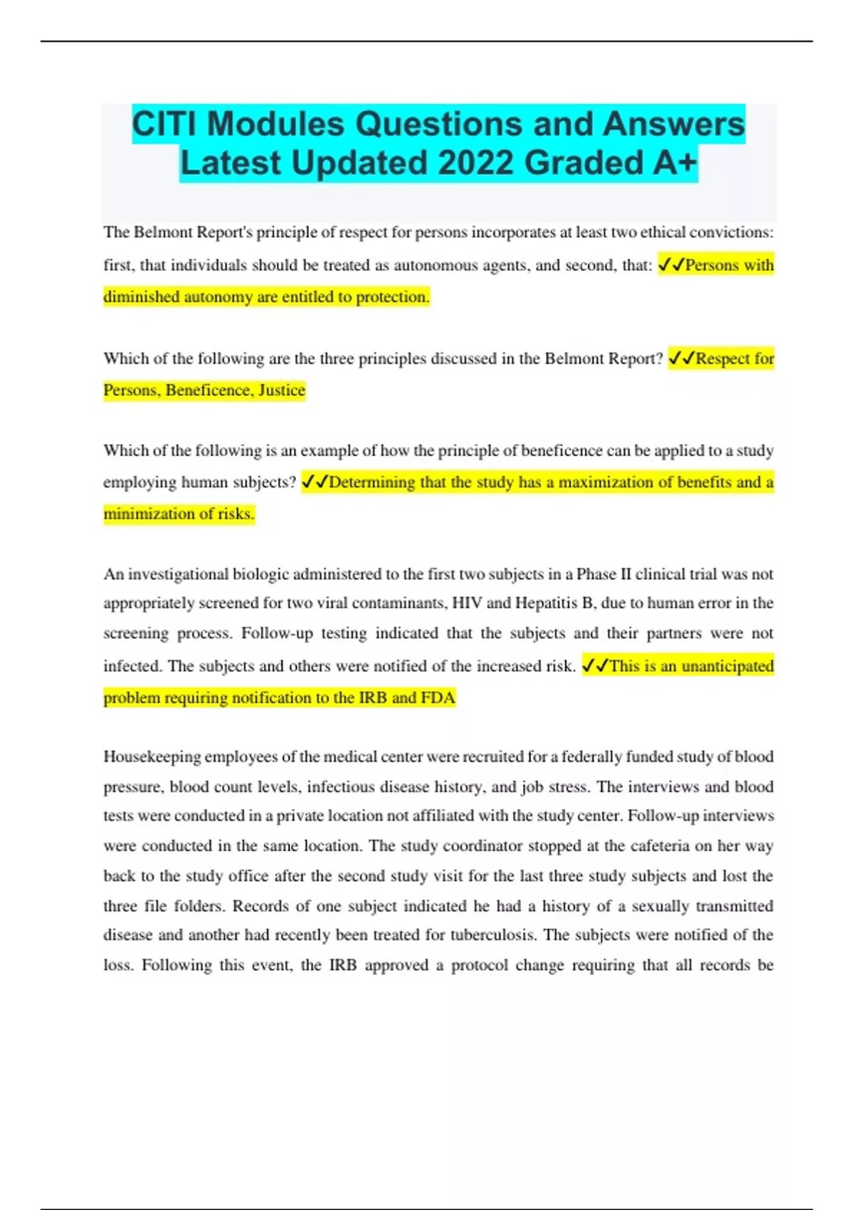 CITI Modules Questions and Answers Latest Updated 2023 Graded A+