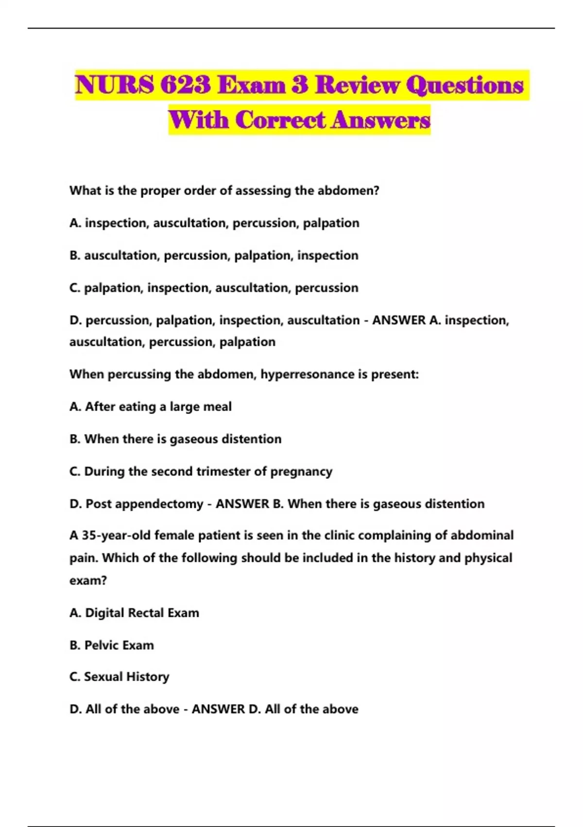 NURS 623 Exam 3 Review Questions With Correct Answers...