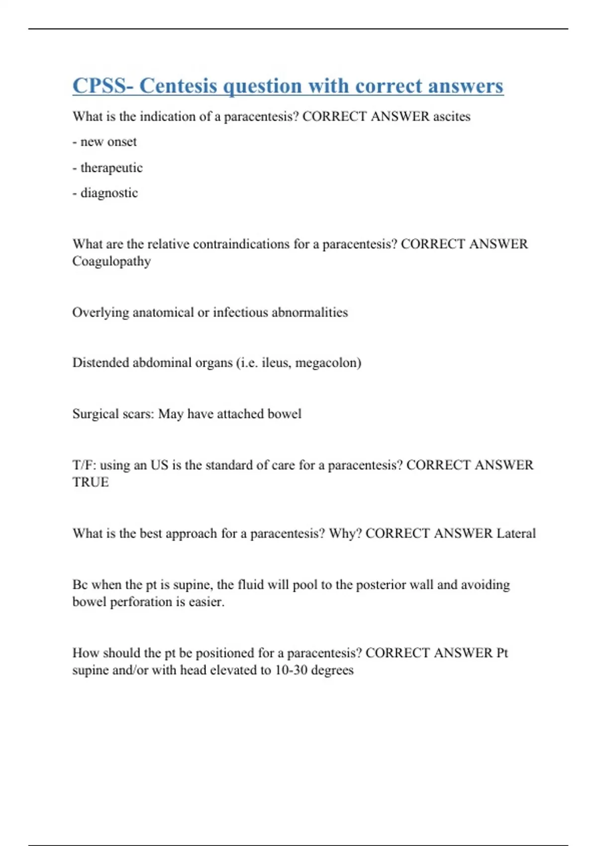 CPSS- Centesis question with correct answers