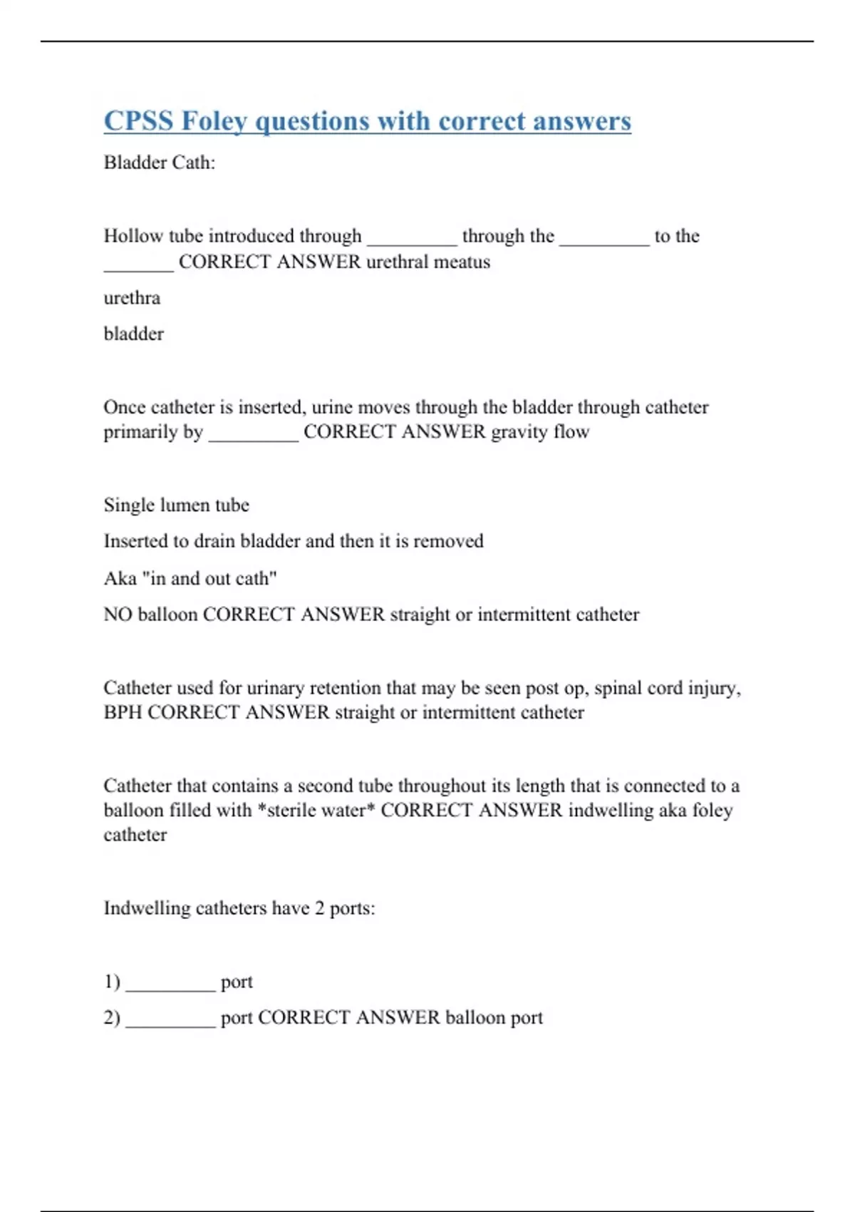 CPSS Foley questions with correct answers
