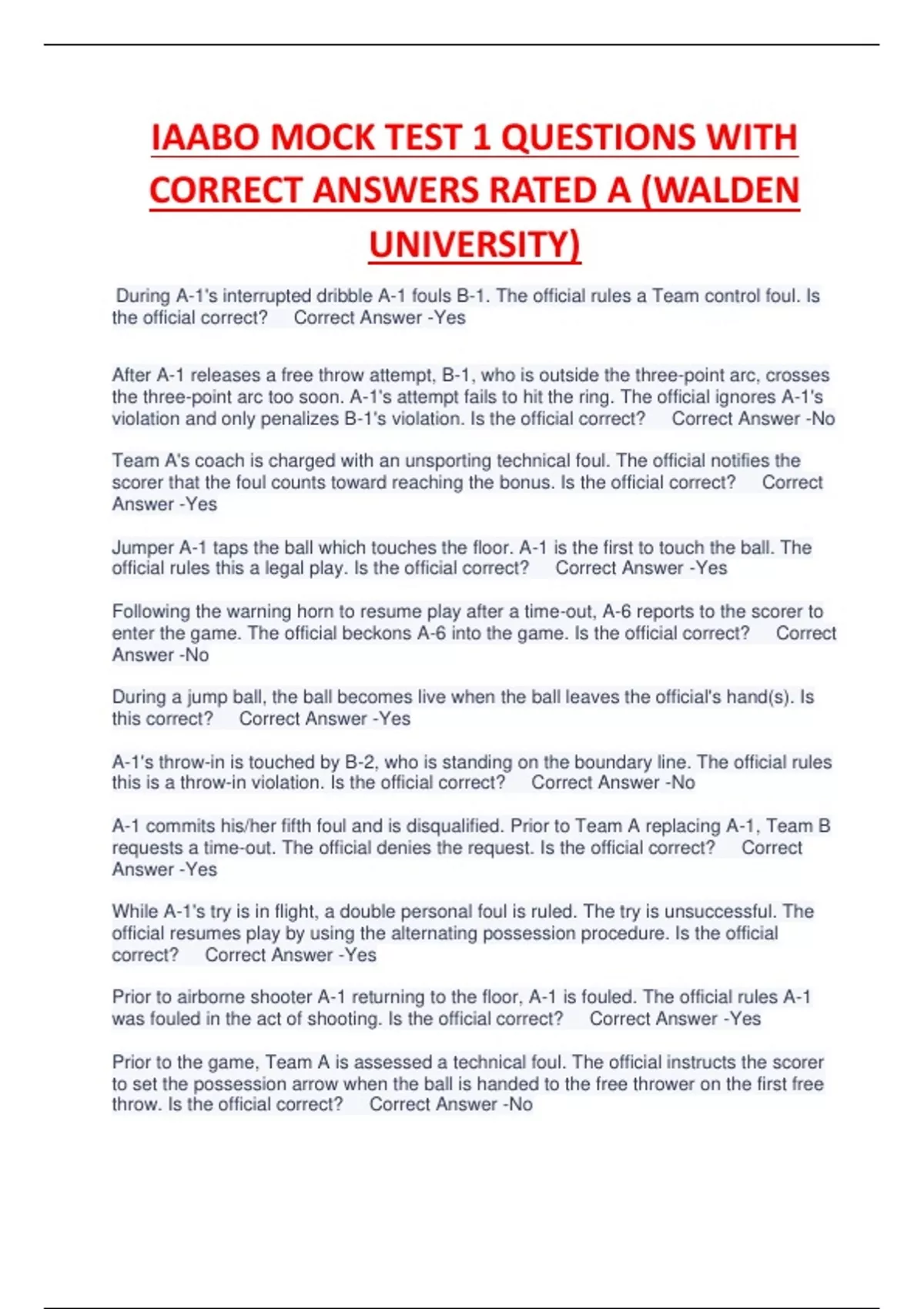 IAABO MOCK TEST 1 QUESTIONS WITH CORRECT ANSWERS RATED A (WALDEN UNIVERSITY)