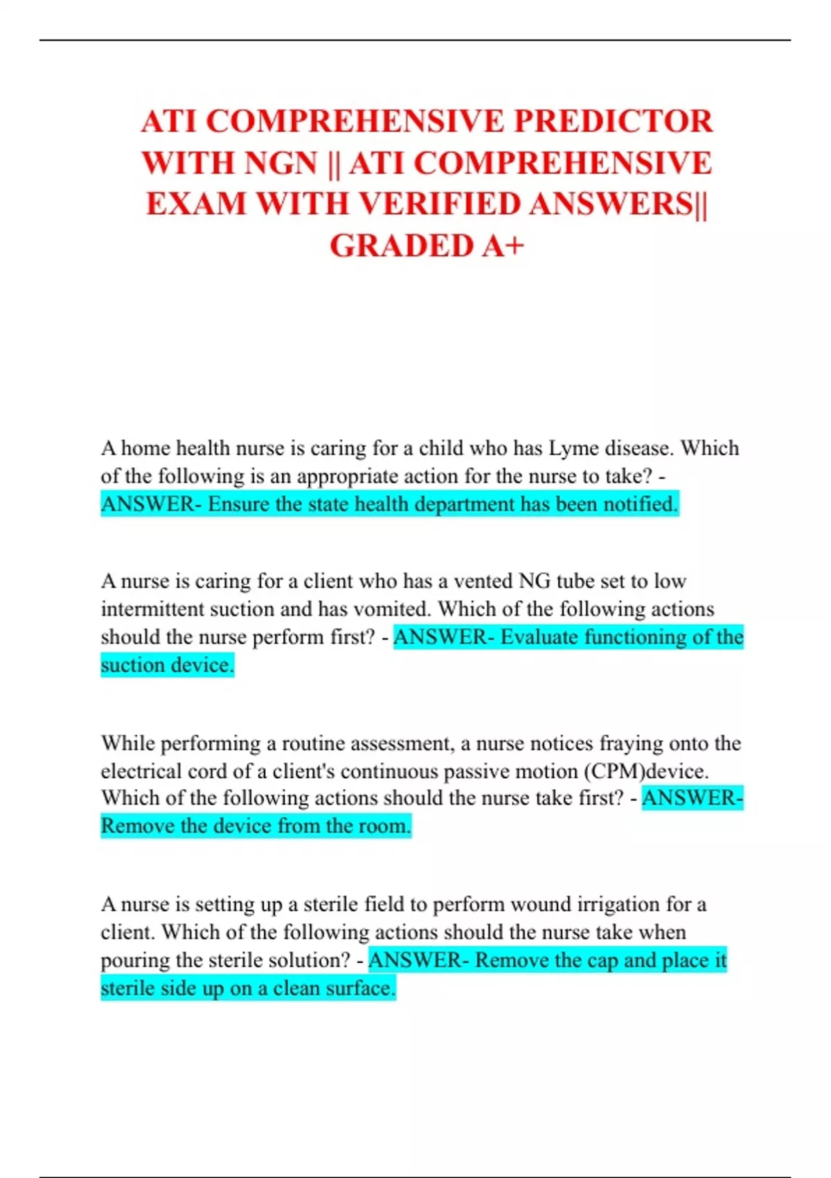 ATI COMPREHENSIVE PREDICTOR WITH NGN || ATI COMPREHENSIVE EXAM WITH VERIFIED ANSWERS|| GRADED A+ATI COMPREHENSIVE PREDICTOR WITH NGN || ATI COMPREHENSIVE EXAM WITH VERIFIED ANSWERS|| GRADED A+