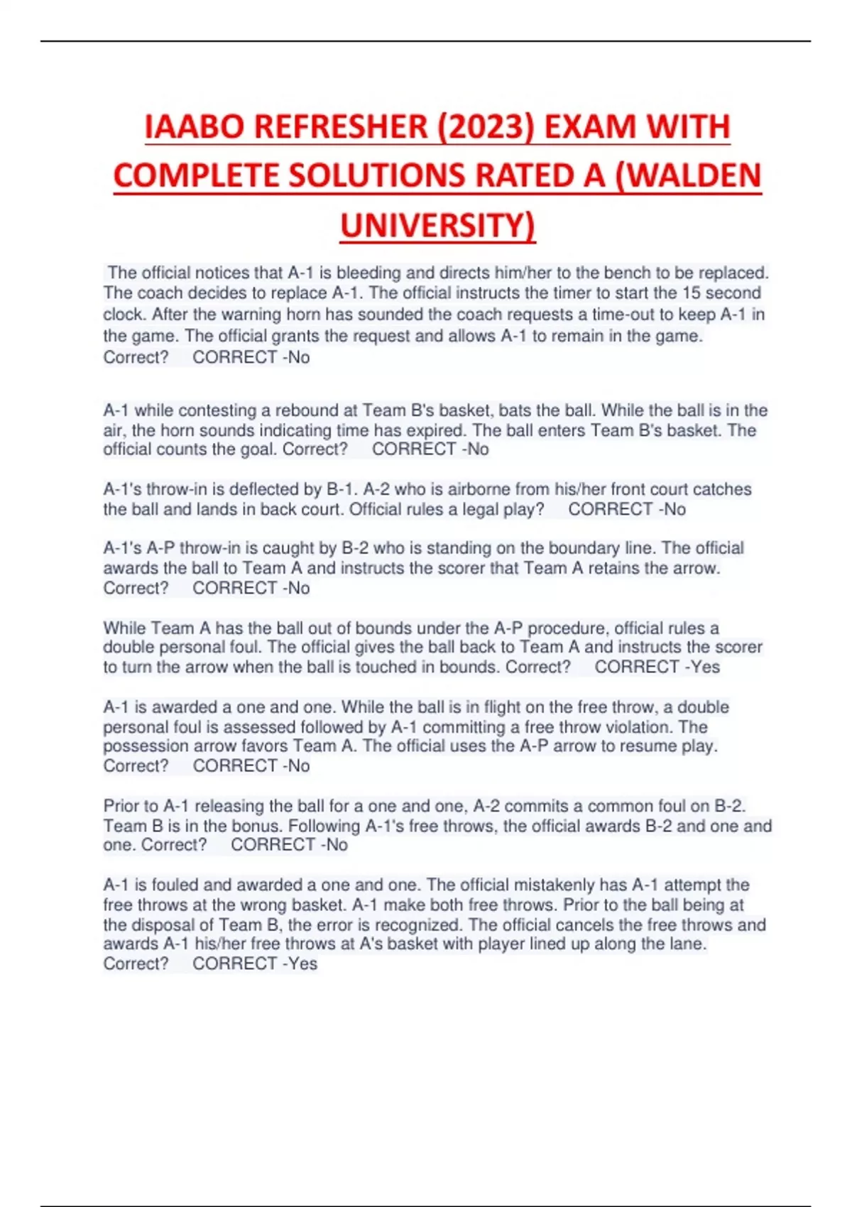 IAABO REFRESHER (2023) EXAM WITH COMPLETE SOLUTIONS RATED A (WALDEN UNIVERSITY)