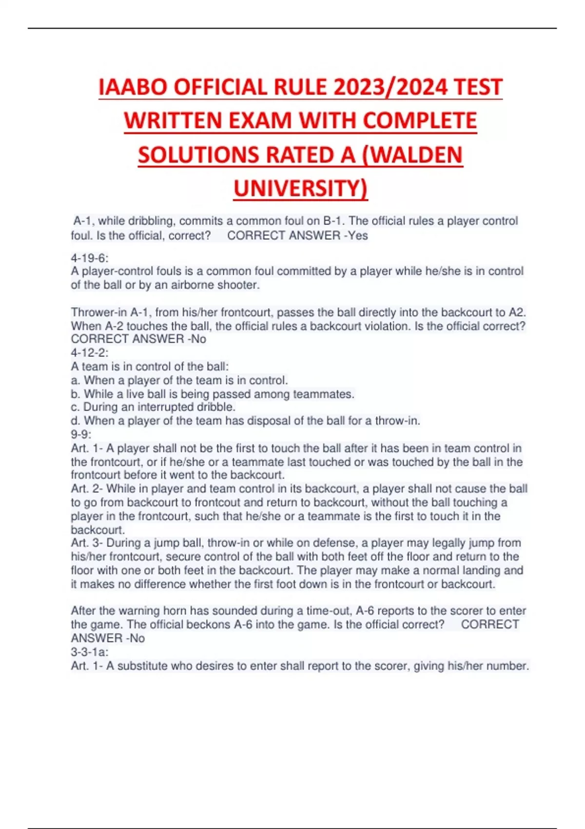 IAABO OFFICIAL RULE 2023/2024 TEST WRITTEN EXAM WITH COMPLETE SOLUTIONS RATED A (WALDEN UNIVERSITY)IAABO OFFICIAL RULE 2023/2024 TEST WRITTEN EXAM WITH COMPLETE SOLUTIONS RATED A (WALDEN UNIVERSITY)IAABO OFFICIAL RULE 2023/2024 TEST WRITTEN EXAM WITH COMPLETE SOLUTIONS RATED A (WALDEN UNIVERSITY)IAABO OFFICIAL RULE 2023/2024 TEST WRITTEN EXAM WITH COMPLETE SOLUTIONS RATED A (WALDEN UNIVERSITY)IAABO OFFICIAL RULE 2023/2024 TEST WRITTEN EXAM WITH COMPLETE SOLUTIONS RATED A (WALDEN UNIVERSITY)IAABO OFFICIAL RULE 2023/2024 TEST WRITTEN EXAM WITH COMPLETE SOLUTIONS RATED A (WALDEN UNIVERSITY)IAABO OFFICIAL RULE 2023/2024 TEST WRITTEN EXAM WITH COMPLETE SOLUTIONS RATED A (WALDEN UNIVERSITY)