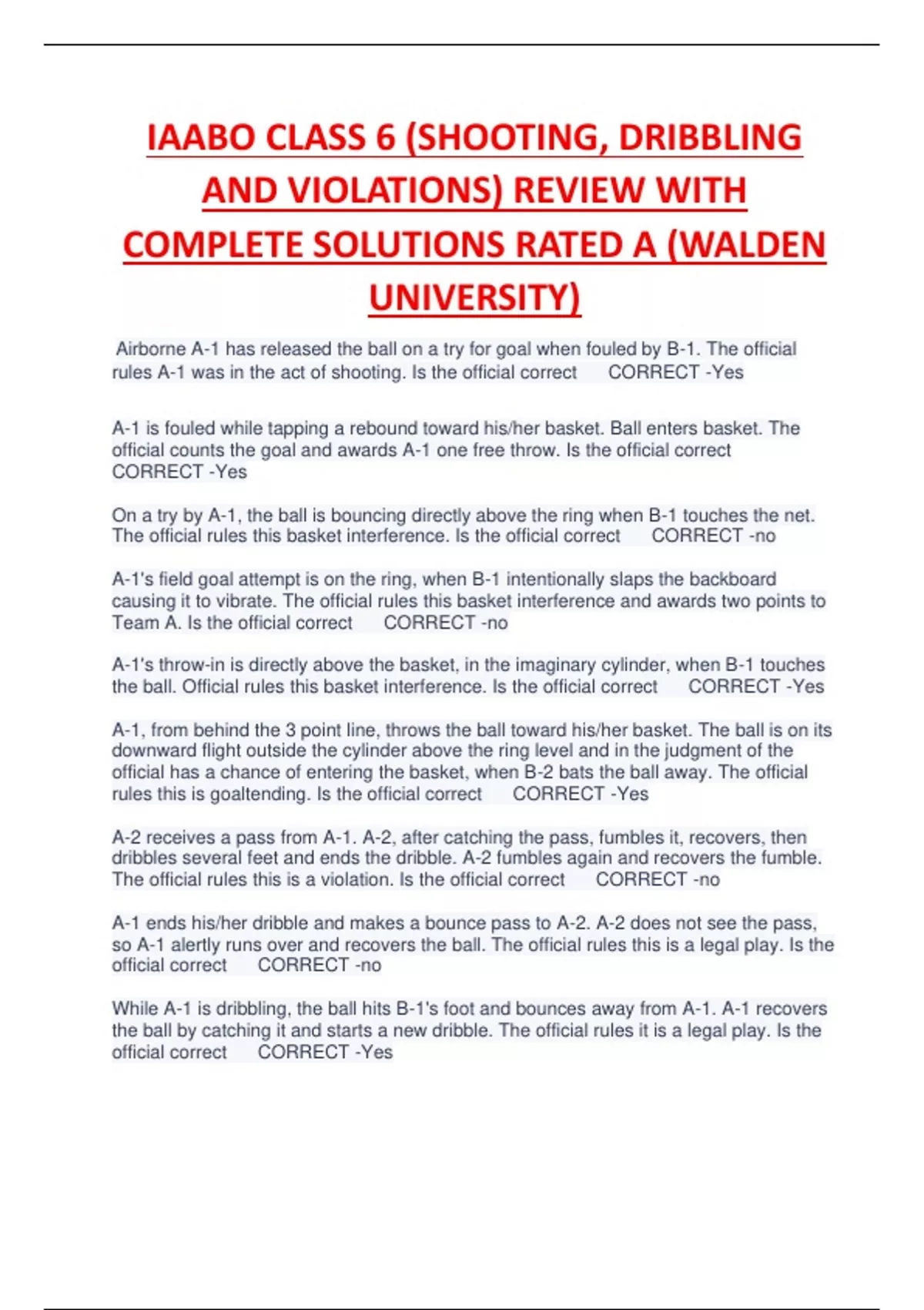 IAABO CLASS 6 (SHOOTING, DRIBBLING AND VIOLATIONS) REVIEW WITH COMPLETE SOLUTIONS RATED A (WALDEN UNIVERSITY)IAABO CLASS 6 (SHOOTING, DRIBBLING AND VIOLATIONS) REVIEW WITH COMPLETE SOLUTIONS RATED A (WALDEN UNIVERSITY)IAABO CLASS 6 (SHOOTING, DRIBBLING AND VIOLATIONS) REVIEW WITH COMPLETE SOLUTIONS RATED A (WALDEN UNIVERSITY)IAABO CLASS 6 (SHOOTING, DRIBBLING AND VIOLATIONS) REVIEW WITH COMPLETE SOLUTIONS RATED A (WALDEN UNIVERSITY)IAABO CLASS 6 (SHOOTING, DRIBBLING AND VIOLATIONS) REVIEW WITH COMPLETE SOLUTIONS RATED A (WALDEN UNIVERSITY)IAABO CLASS 6 (SHOOTING, DRIBBLING AND VIOLATIONS) REVIEW WITH COMPLETE SOLUTIONS RATED A (WALDEN UNIVERSITY)IAABO CLASS 6 (SHOOTING, DRIBBLING AND VIOLATIONS) REVIEW WITH COMPLETE SOLUTIONS RATED A (WALDEN UNIVERSITY)IAABO CLASS 6 (SHOOTING, DRIBBLING AND VIOLATIONS) REVIEW WITH COMPLETE SOLUTIONS RATED A (WALDEN UNIVERSITY)