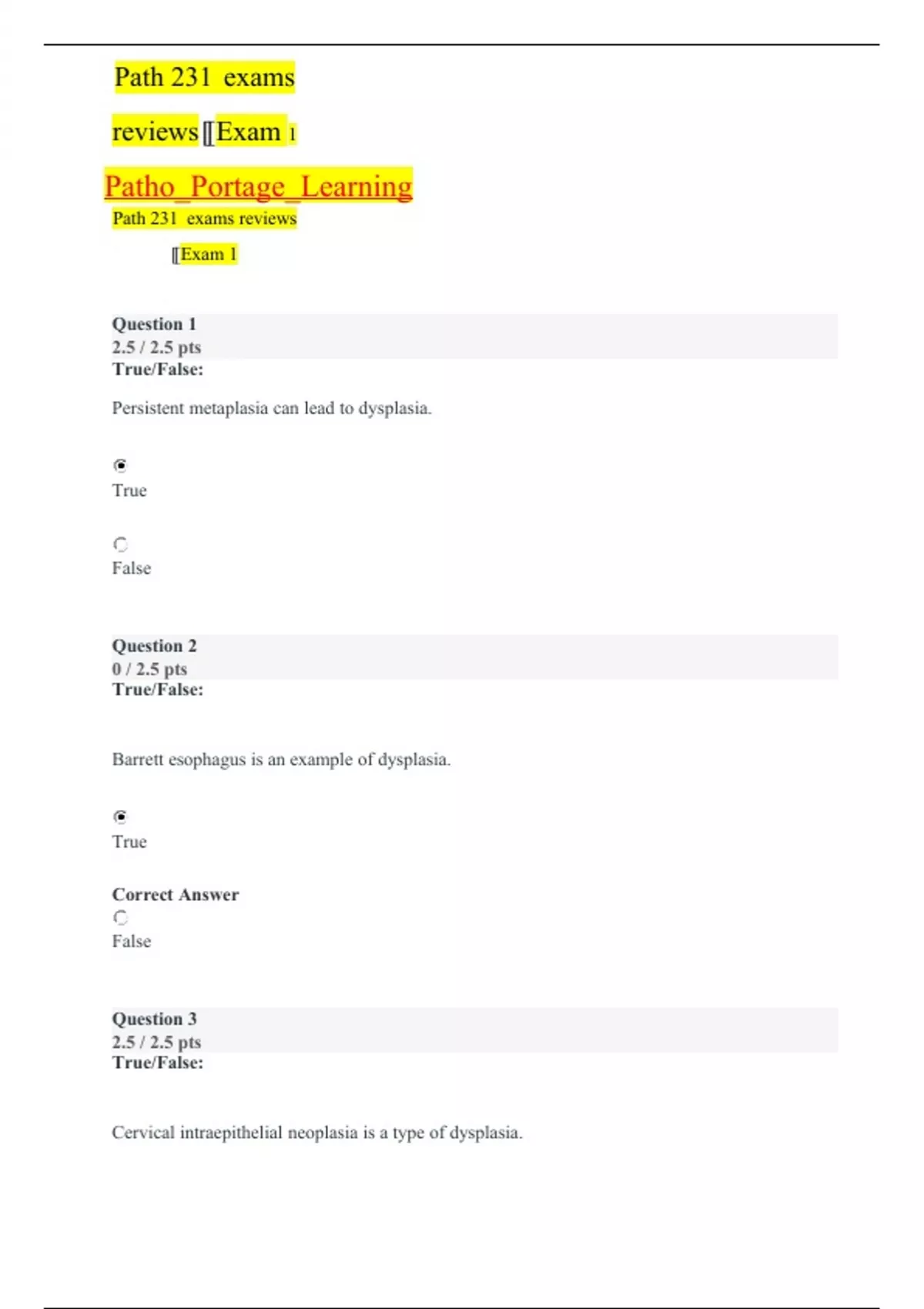 Path 231 exams reviews [[Exam 1 Patho_Portage_Learning