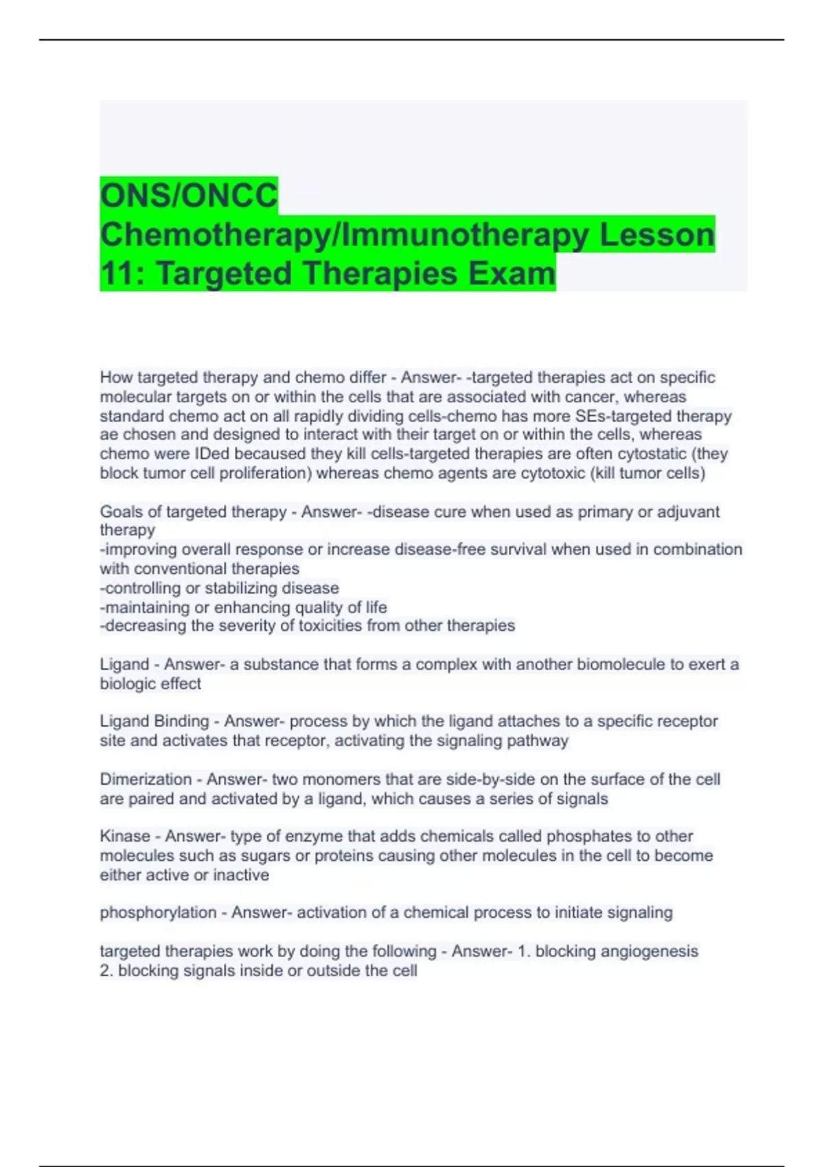 ONS ONCC Chemotherapy Immunotherapy Lesson 11 Targeted Therapies Exam Questions and Answers