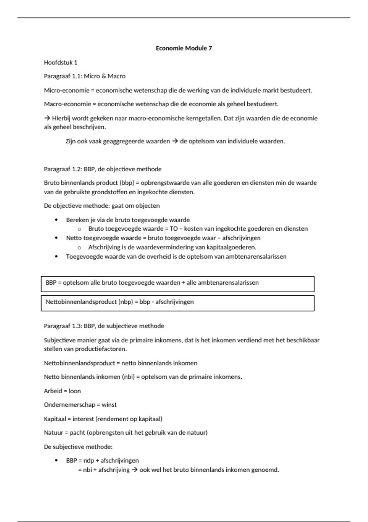 Paragraaf 1.2: BBP, de objectieve methode
