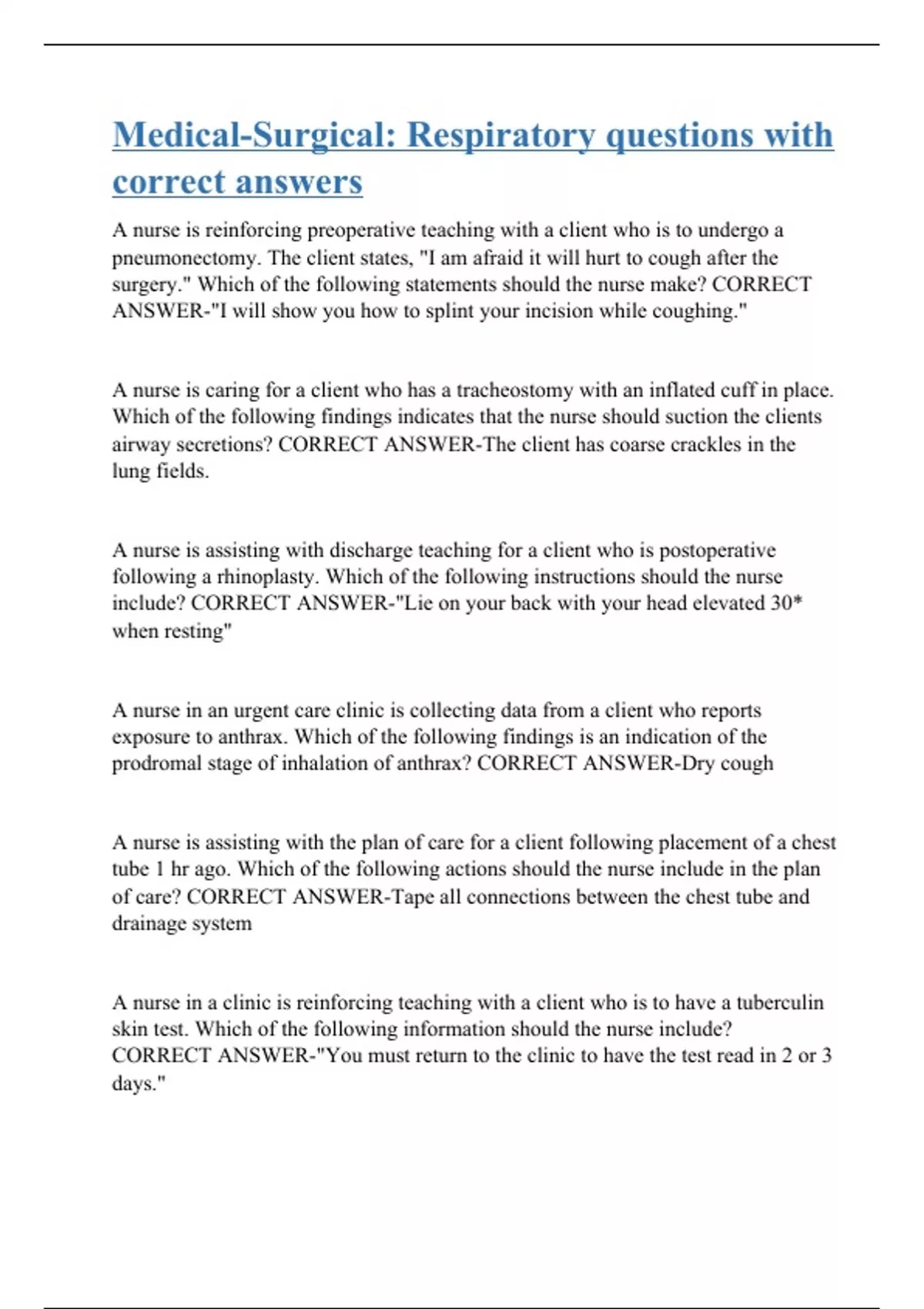 Medical-Surgical: Respiratory questions with correct answers
