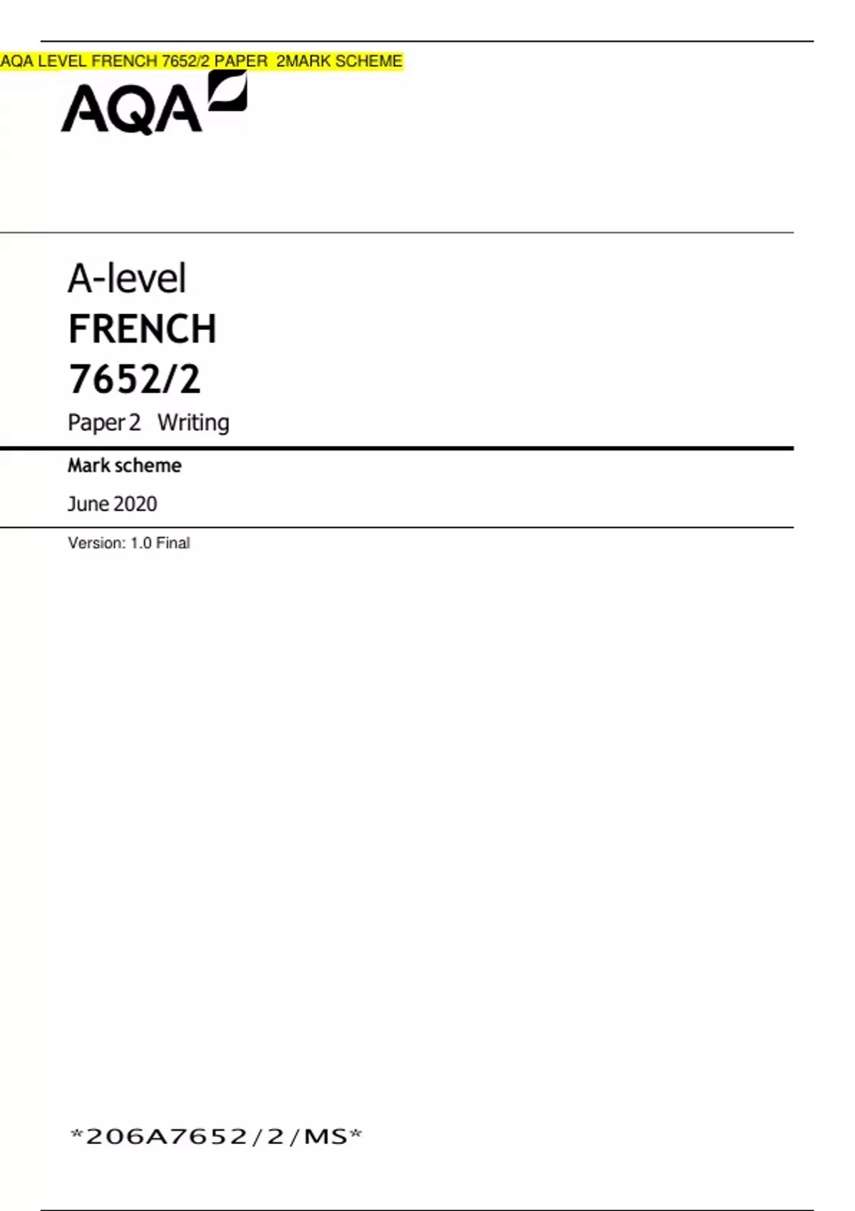 A-level FRENCH 7652/2 Paper 2 Writing Marking scheme Verified Answers