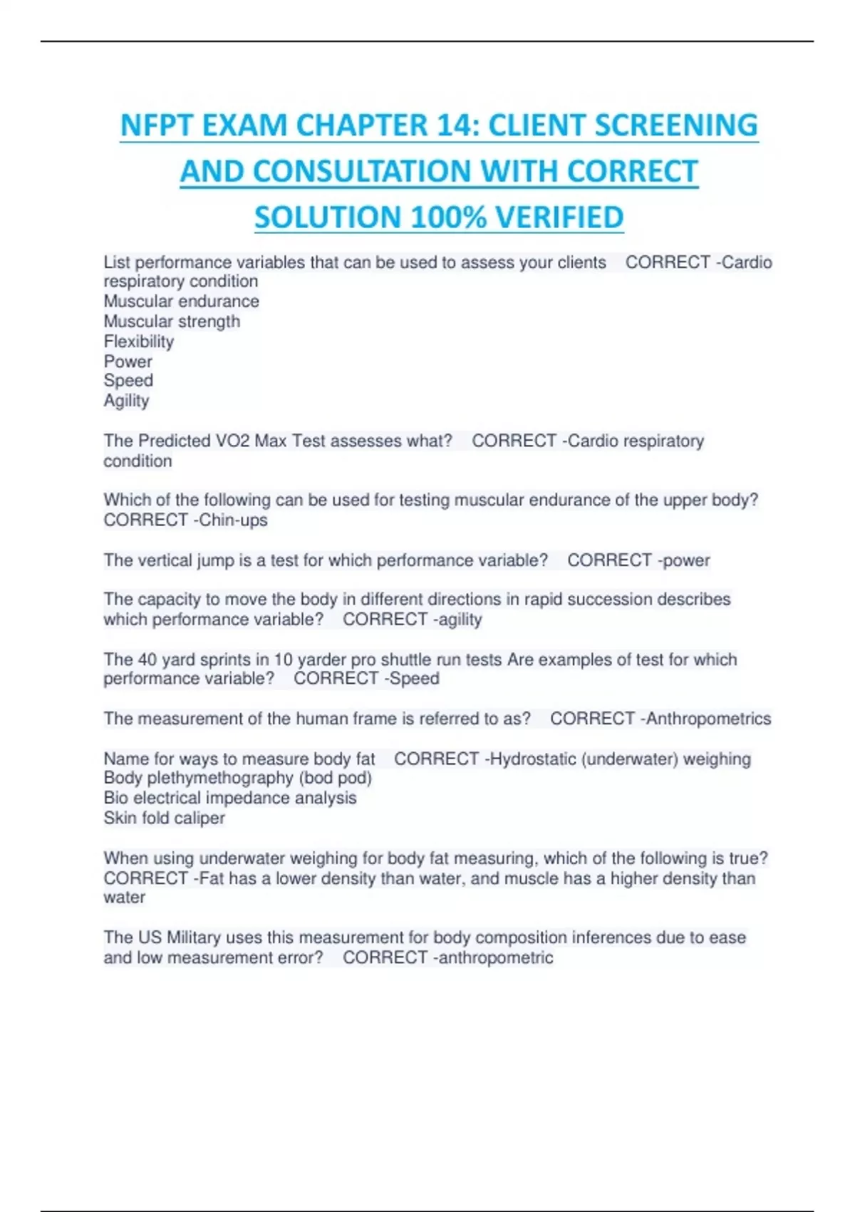 NFPT EXAM CHAPTER 14: CLIENT SCREENING AND CONSULTATION WITH CORRECT SOLUTION 100% VERIFIEDNFPT EXAM CHAPTER 14: CLIENT SCREENING AND CONSULTATION WITH CORRECT SOLUTION 100% VERIFIEDNFPT EXAM CHAPTER 14: CLIENT SCREENING AND CONSULTATION WITH CORRECT SOLUTION 100% VERIFIEDNFPT EXAM CHAPTER 14: CLIENT SCREENING AND CONSULTATION WITH CORRECT SOLUTION 100% VERIFIEDNFPT EXAM CHAPTER 14: CLIENT SCREENING AND CONSULTATION WITH CORRECT SOLUTION 100% VERIFIEDNFPT EXAM CHAPTER 14: CLIENT SCREENING AND CONSULTATION WITH CORRECT SOLUTION 100% VERIFIEDNFPT EXAM CHAPTER 14: CLIENT SCREENING AND CONSULTATION WITH CORRECT SOLUTION 100% VERIFIED