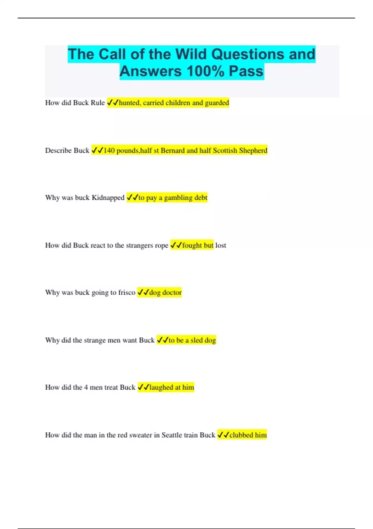 The Call of the Wild Questions and Answers 100% Pass