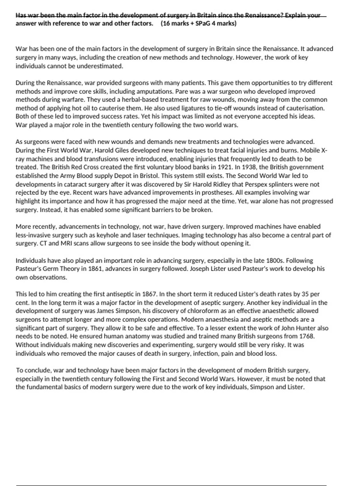 answer with reference to war and other factors. (16 marks + SPaG 4 marks)