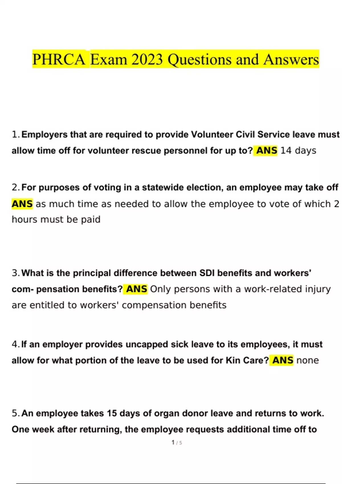 PHRCA Exam questions verified with 100% correct answers