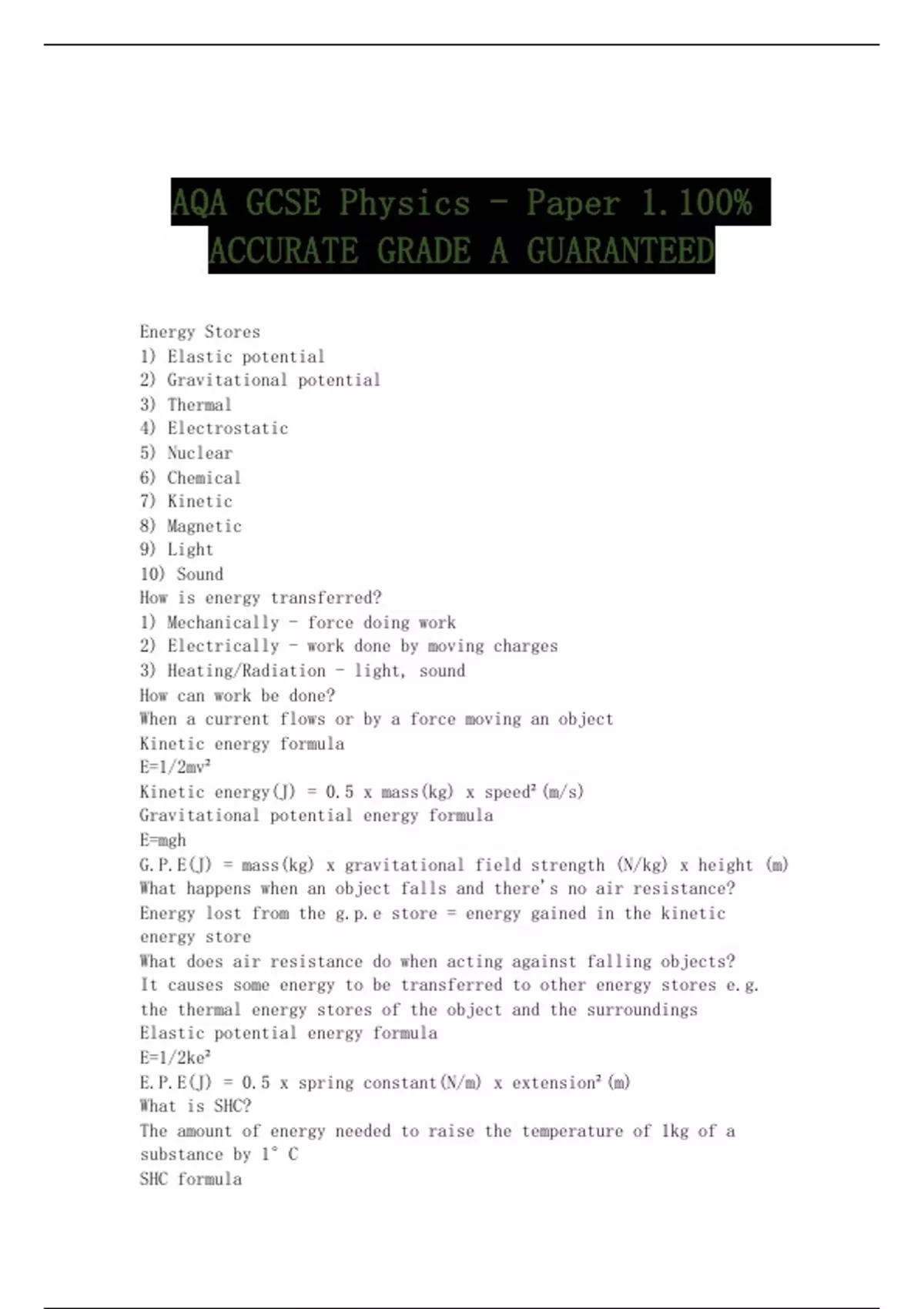 AQA GCSE Physics - Paper 1.100% ACCURATE GRADE A GUARANTEED