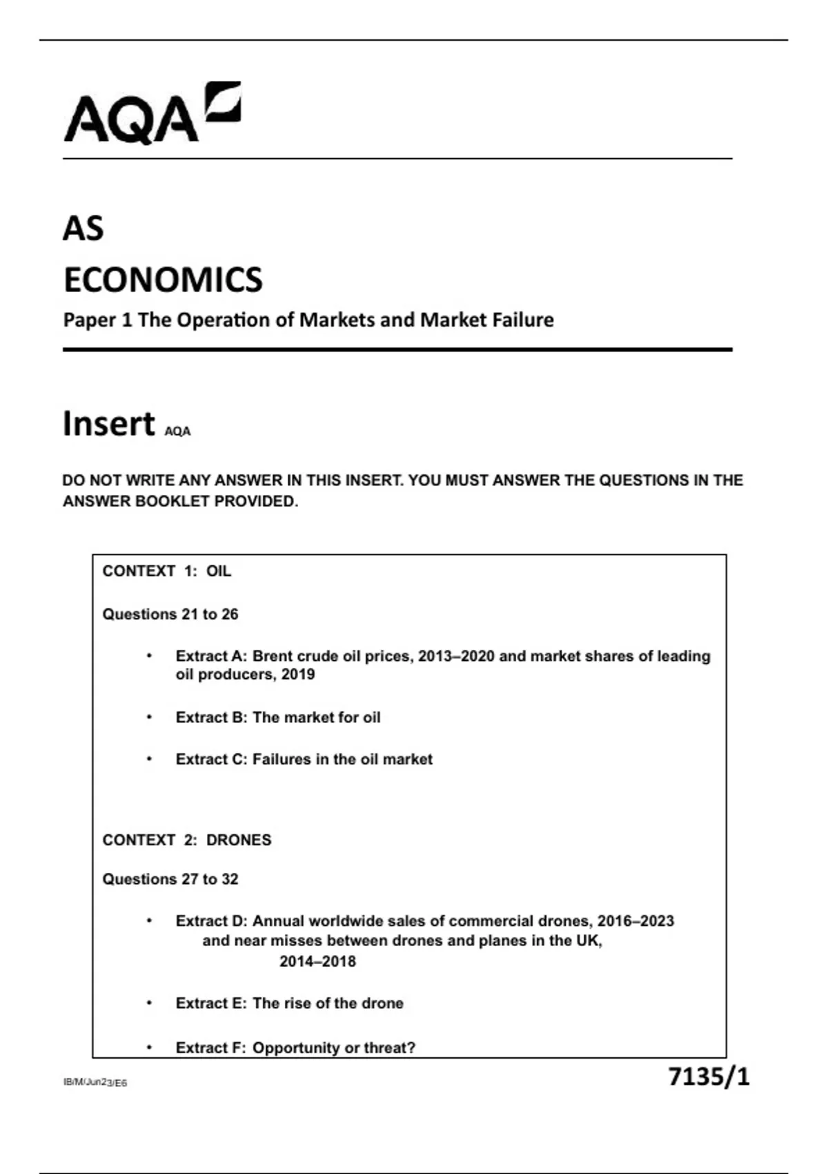 AQA AS ECONOMICS Paper 1 The Operation of Markets and Market Failure Insert 7135-1-INS-Economics-AS-15May23