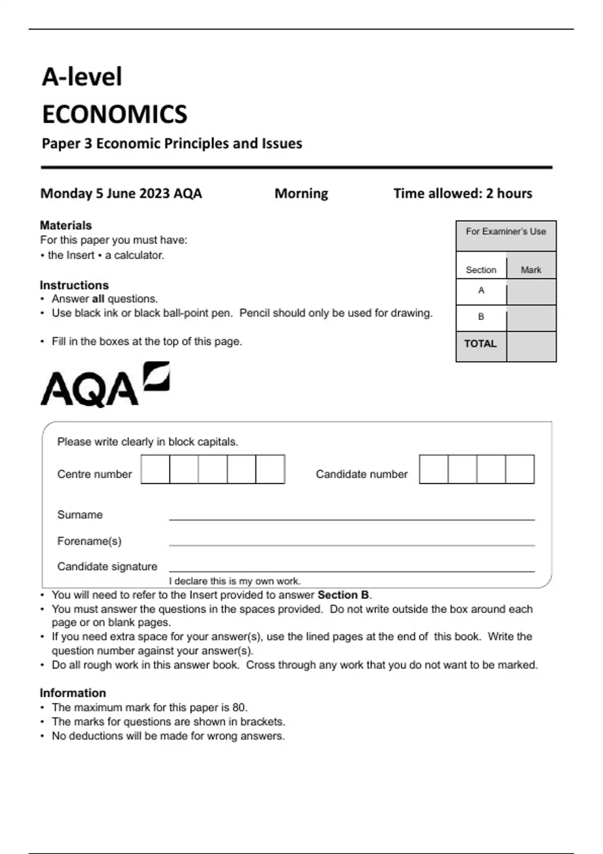 AQA A-level ECONOMICS Paper 3 Economic Principles and Issues 7136-3-QP-Economics-A-5Jun23