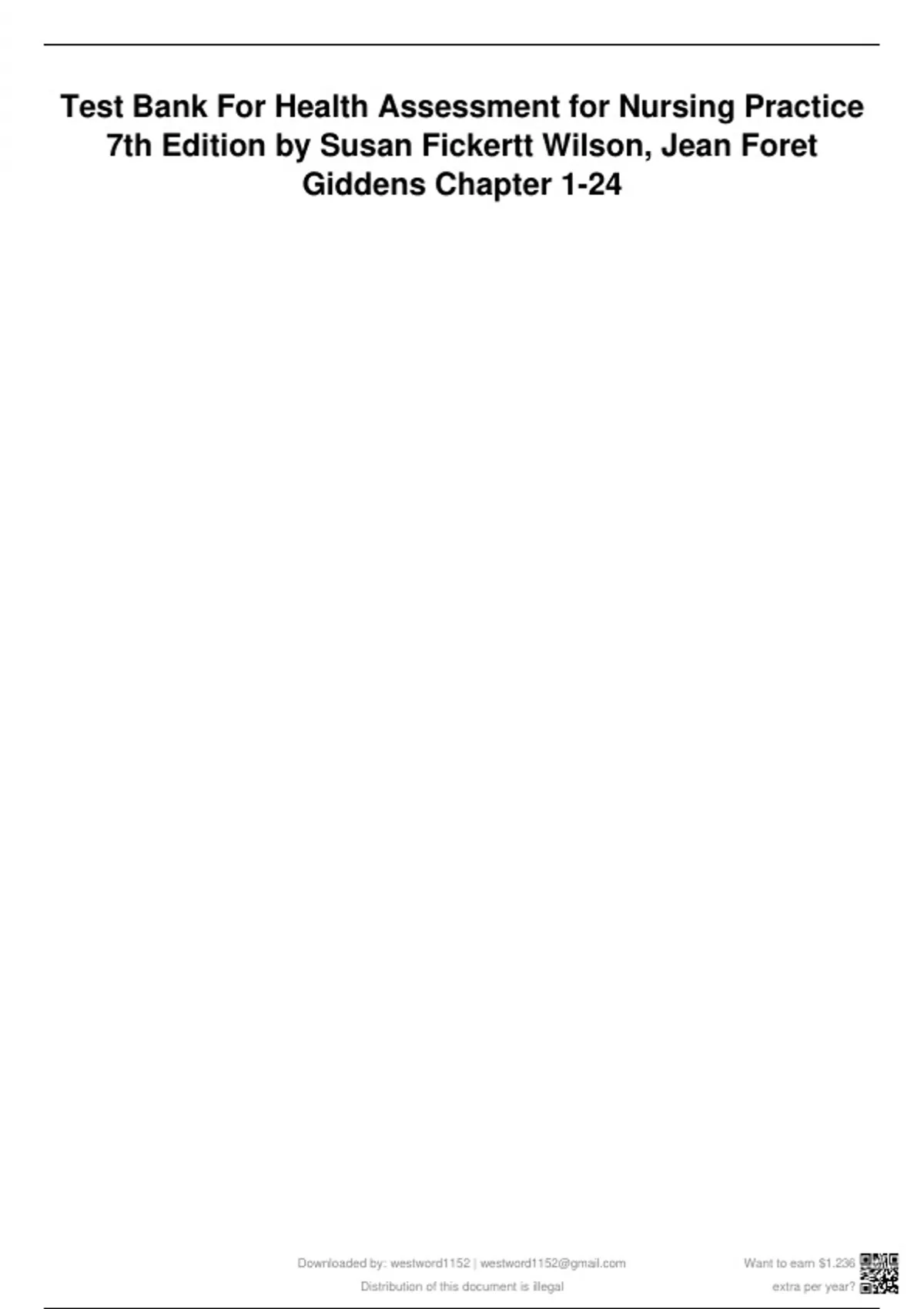 Test Bank For Health Assessment for Nursing Practice 7th Edition by Susan Fickertt Wilson, Jean Foret Giddens Chapter 1-24 updated 2023