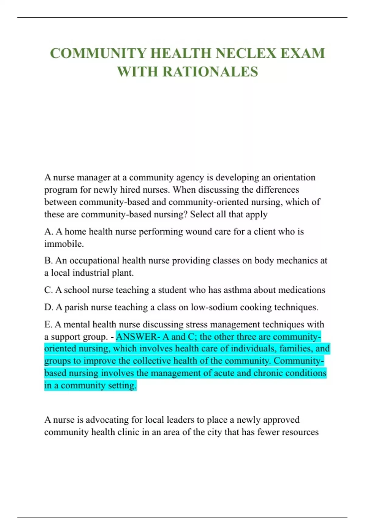 COMMUNITY HEALTH NCLEX EXAM WITH RATIONALES