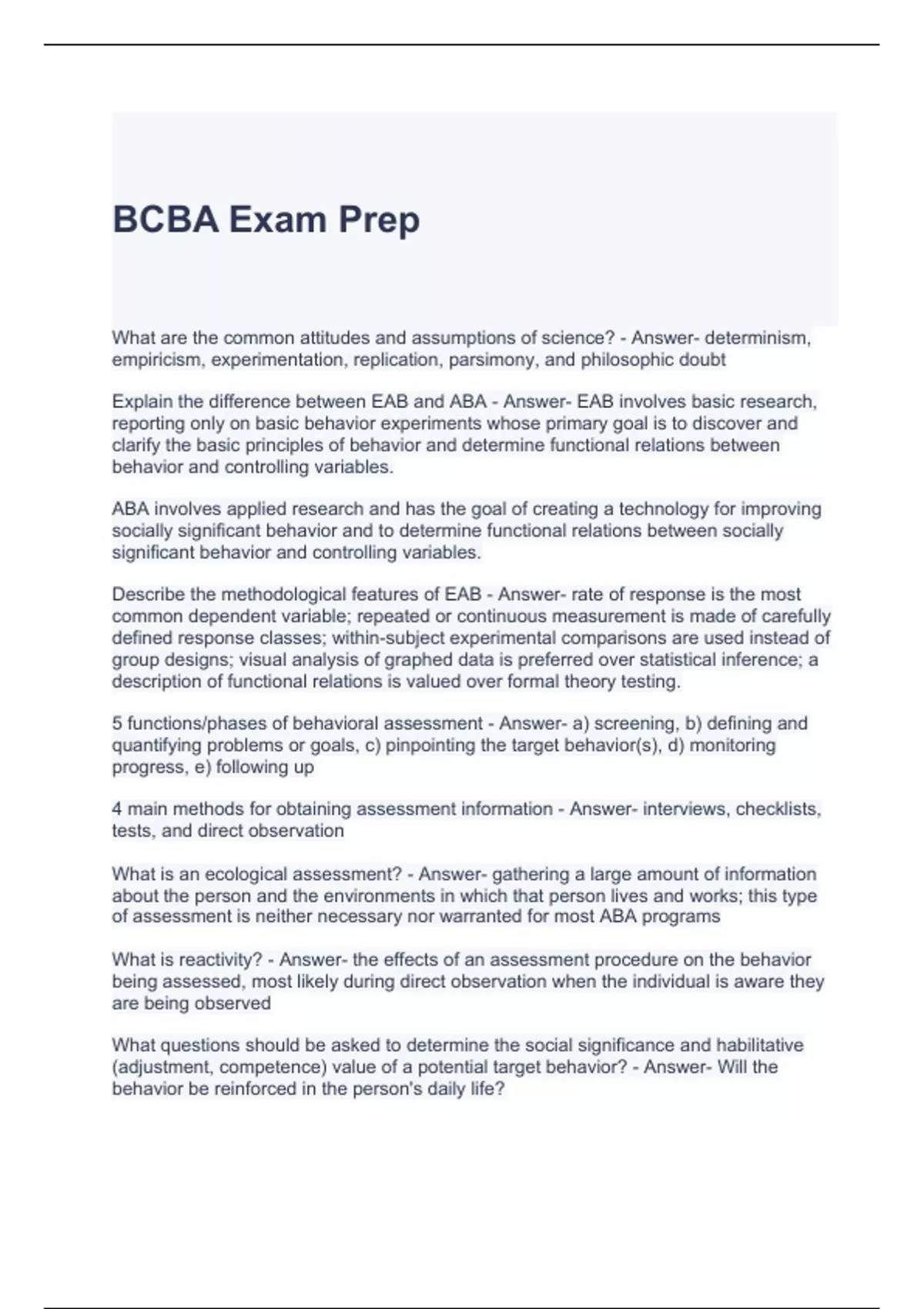 BCBA Exam Bundle ( Graded A)