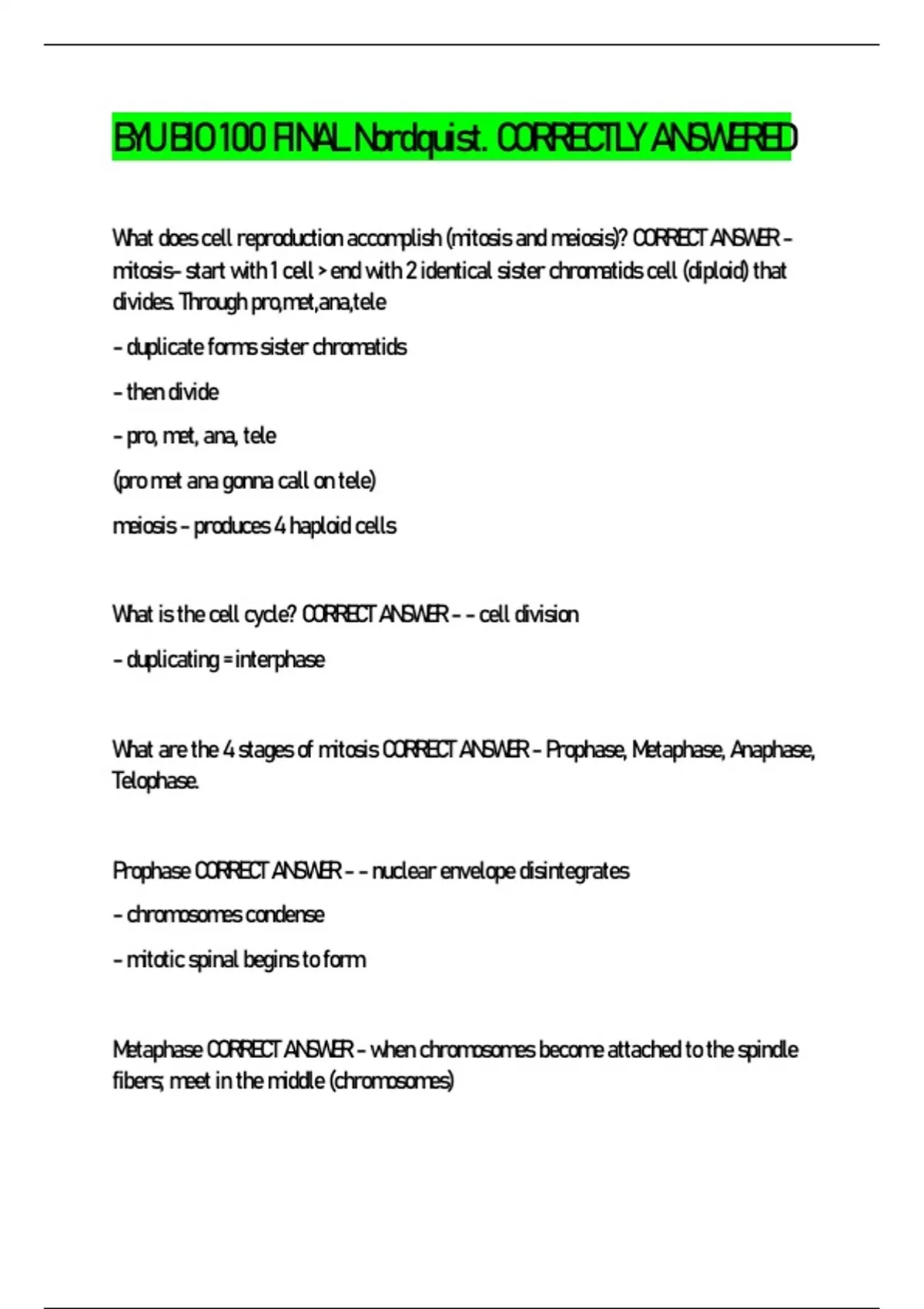 BYU BIO 100 FINAL Nordquist. CORRECTLY ANSWERED