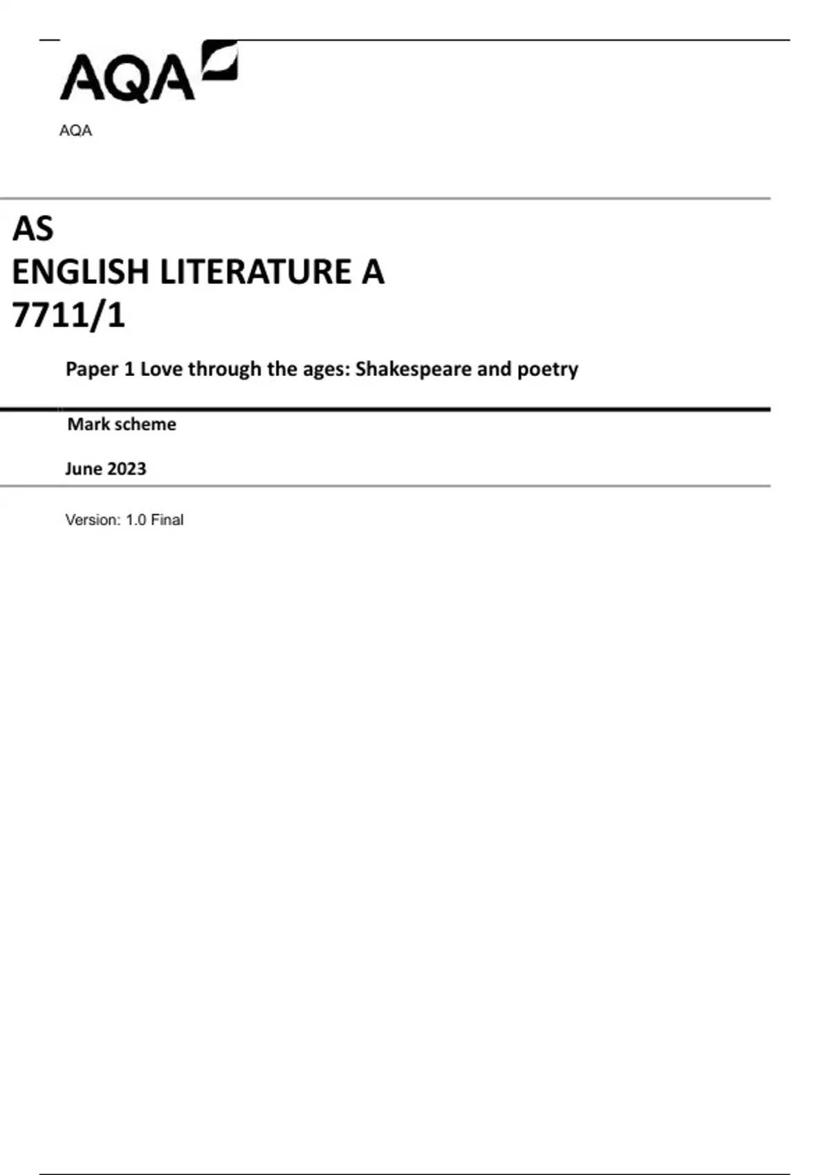 AQA AS ENGLISH LITERATURE A 7711/1 Paper 1 Love through the ages: Shakespeare and poetry Mark scheme June 2023 Version: 1.0 Final