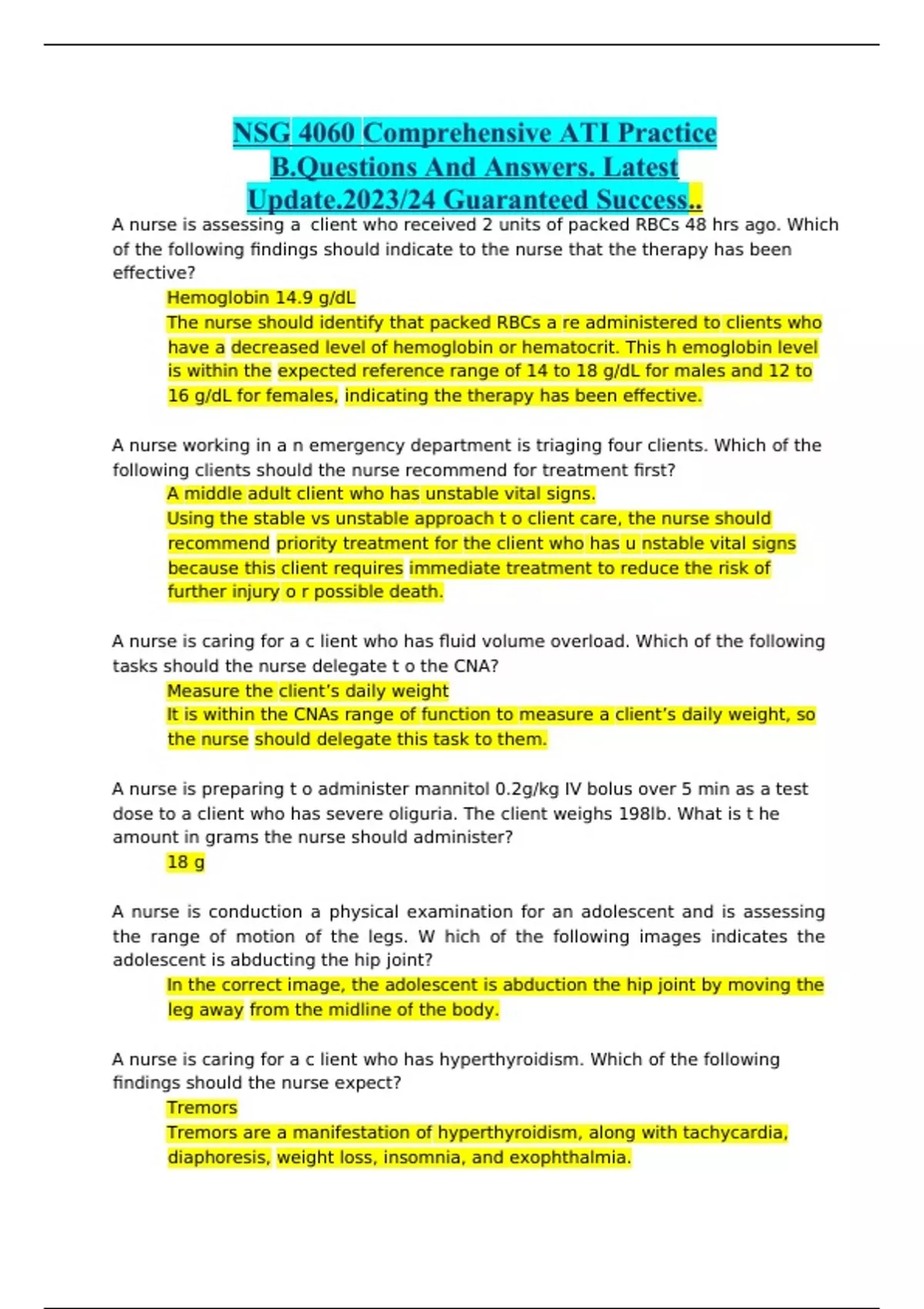 NSG 4060 Comprehensive ATI Practice B.Questions And Answers. Latest Update.2023/24 Guaranteed Success.