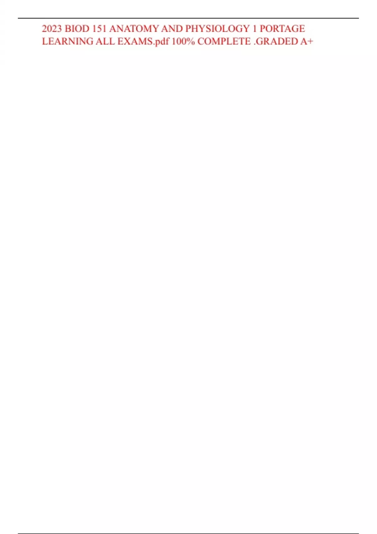 BIOD 151 ANATOMY AND PHYSIOLOGY 1 PORTAGE LEARNING ALL EXAMS.pdf 100% COMPLETE GRADED A+ MODULE 1