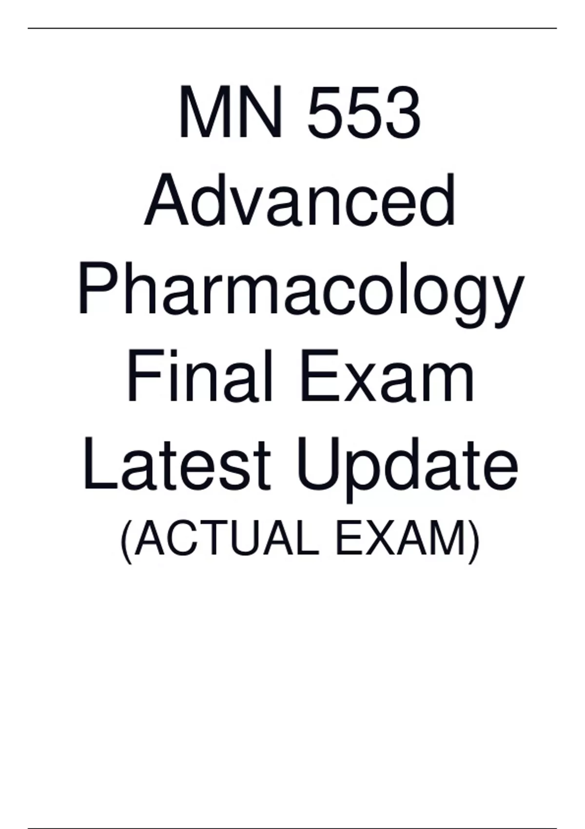 MN 553 Advanced Pharmacology Final Exam Latest Update (ACTUAL EXAM)