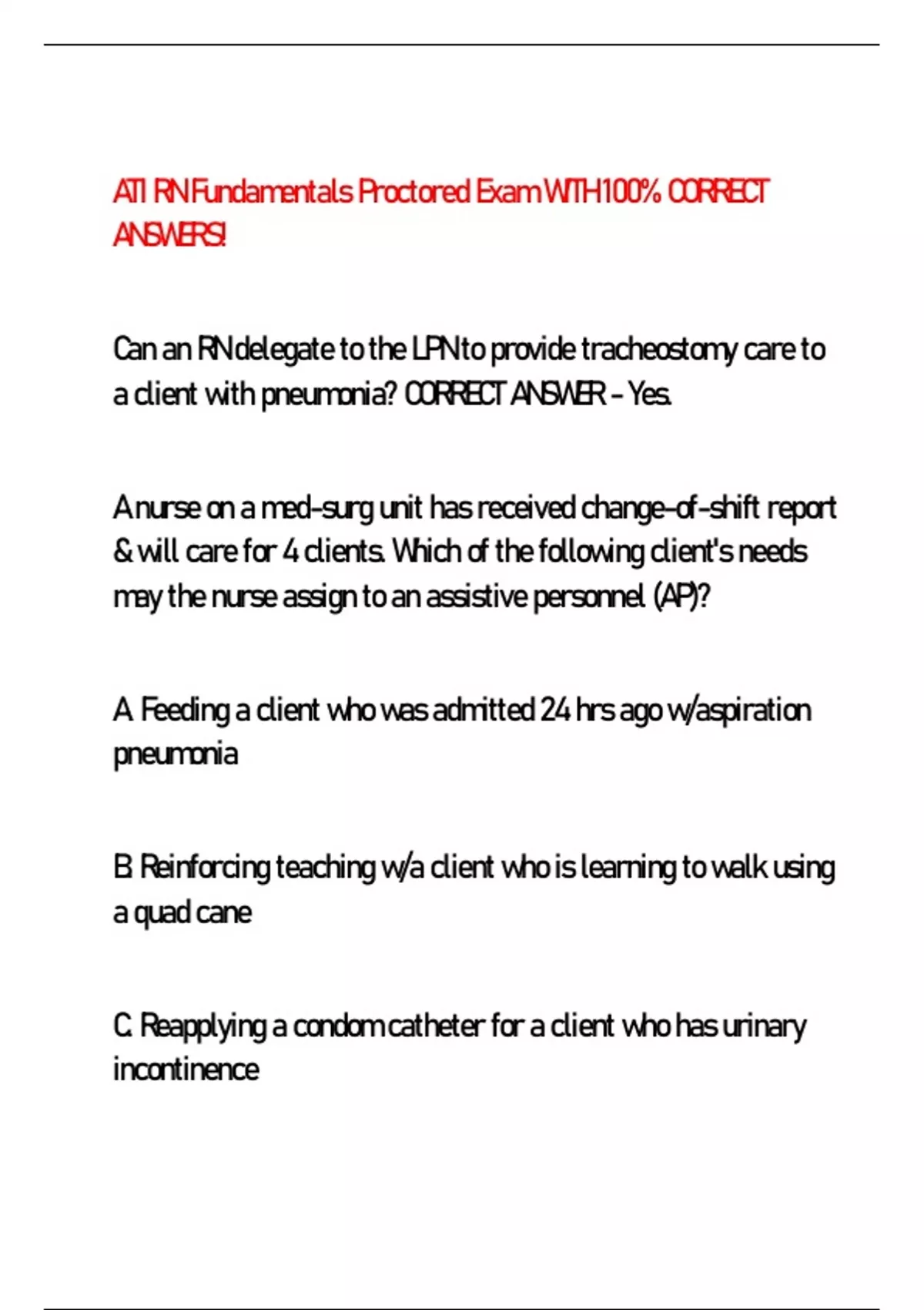 ATI RN Fundamentals Proctored Exam WITH 100% CORRECT ANSWERS!