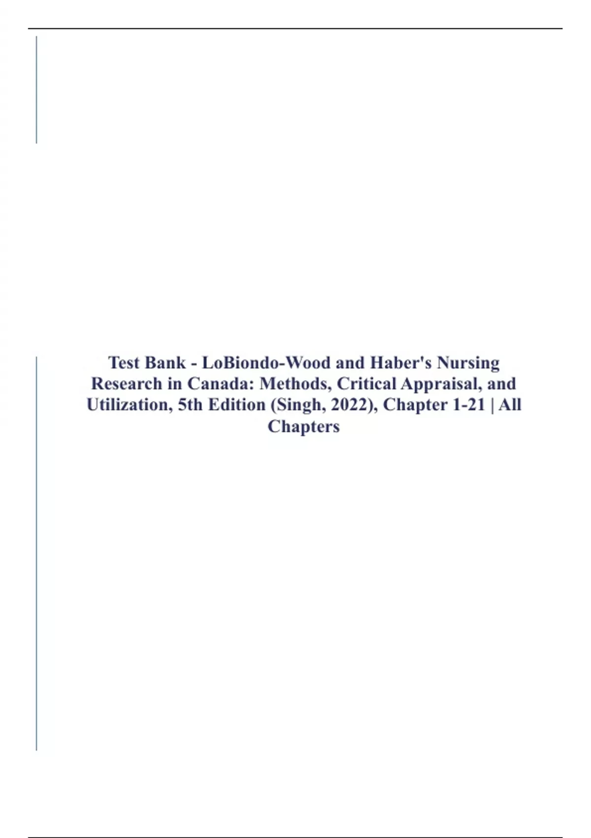 ,TEST BANK FOR NURSING RESEARCH IN CANADA, 4TH EDITION