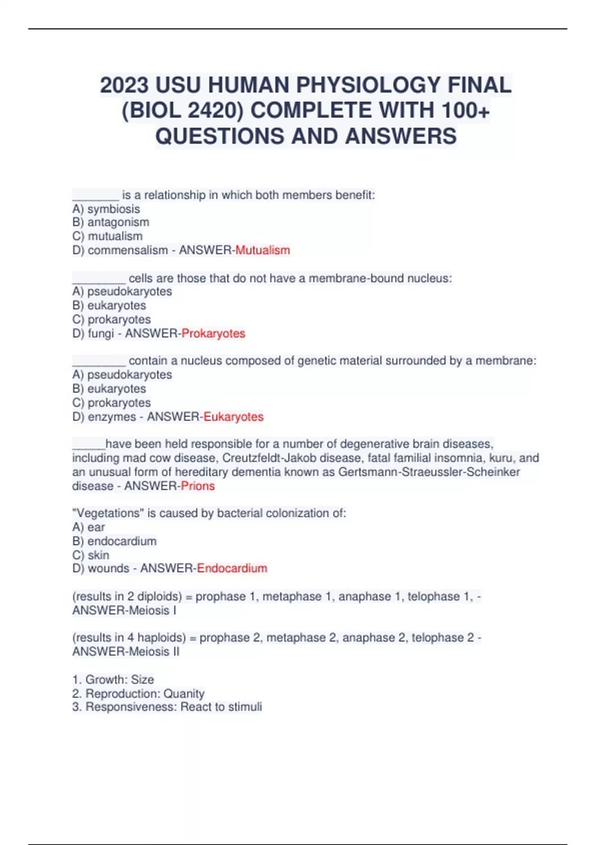 (BIOL 2420) COMPLETE WITH 100+