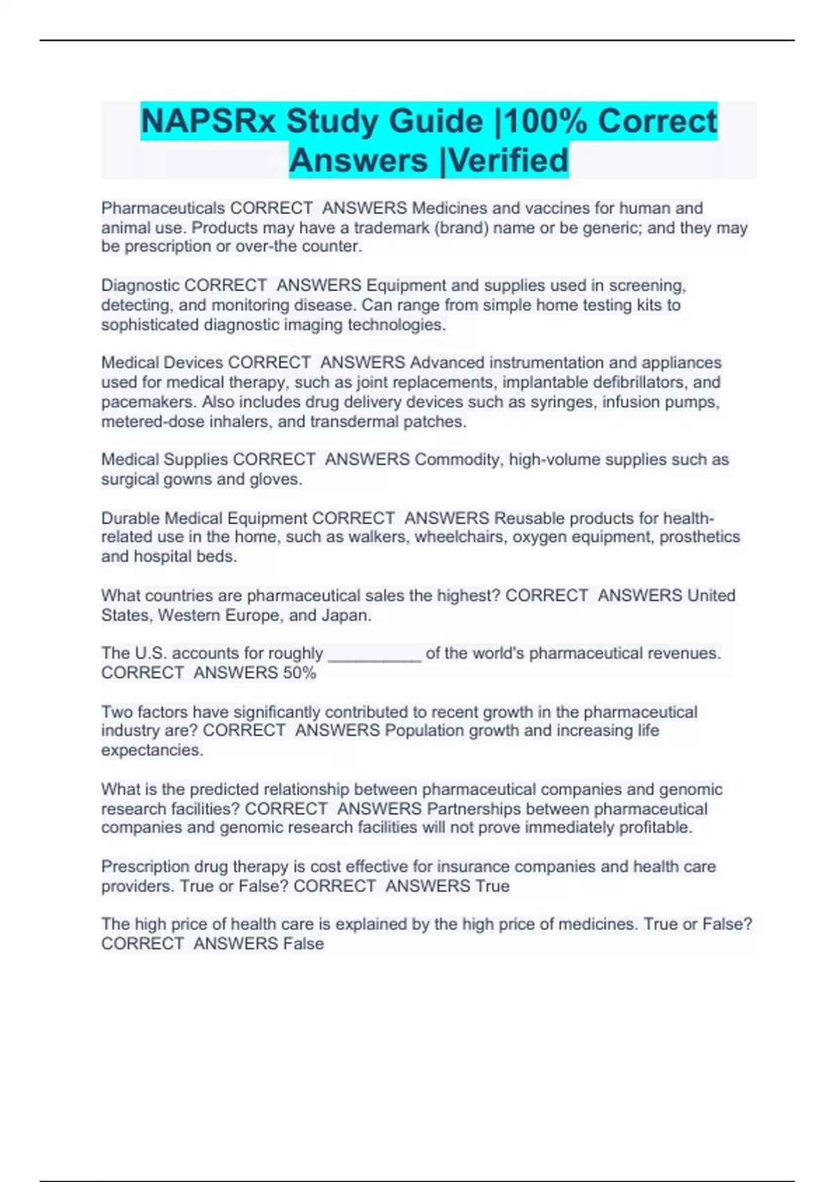 NAPSRx Study Guide |100% Correct Answers |Verified