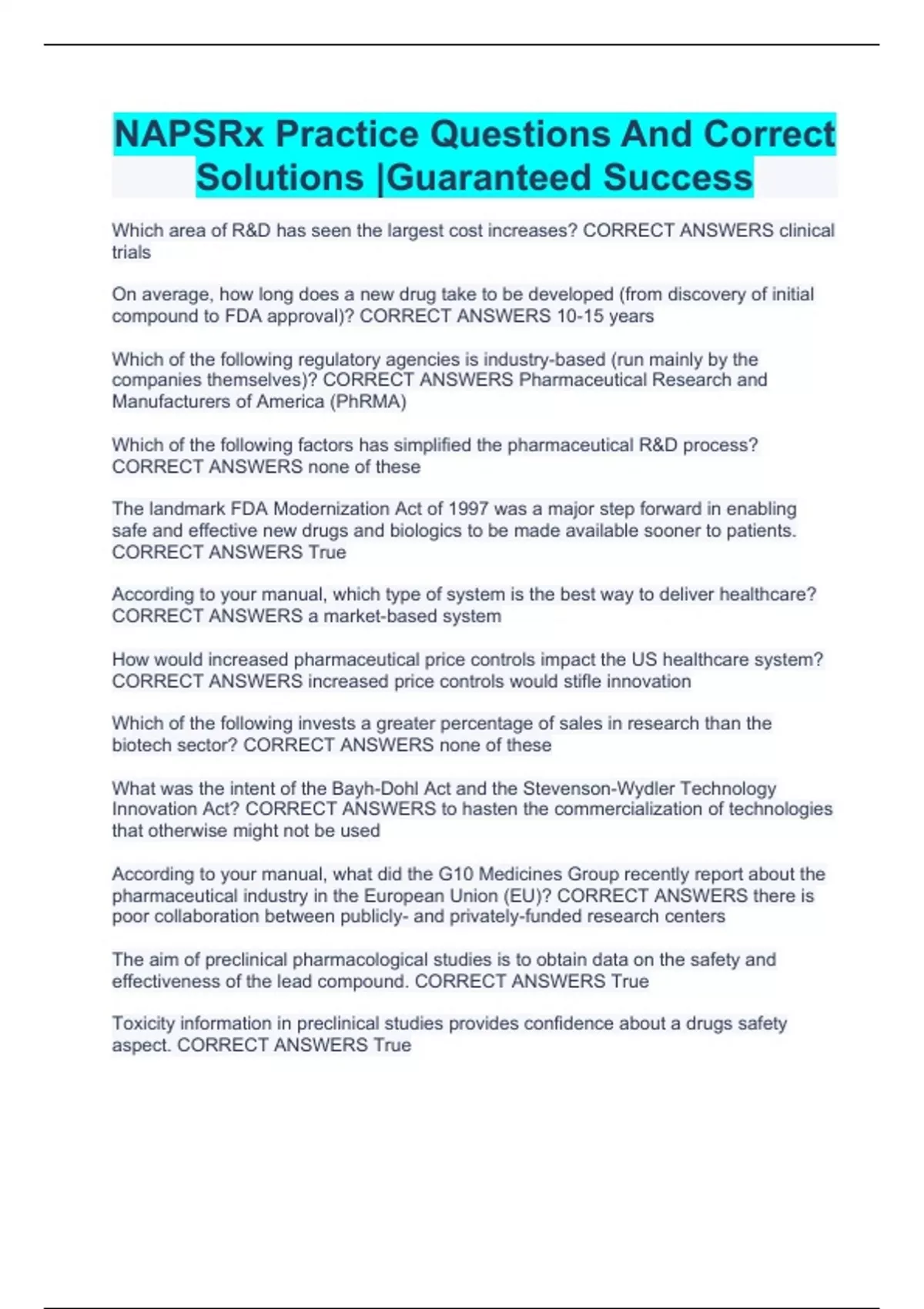 NAPSRx Practice Questions And Correct Solutions |Guaranteed Success