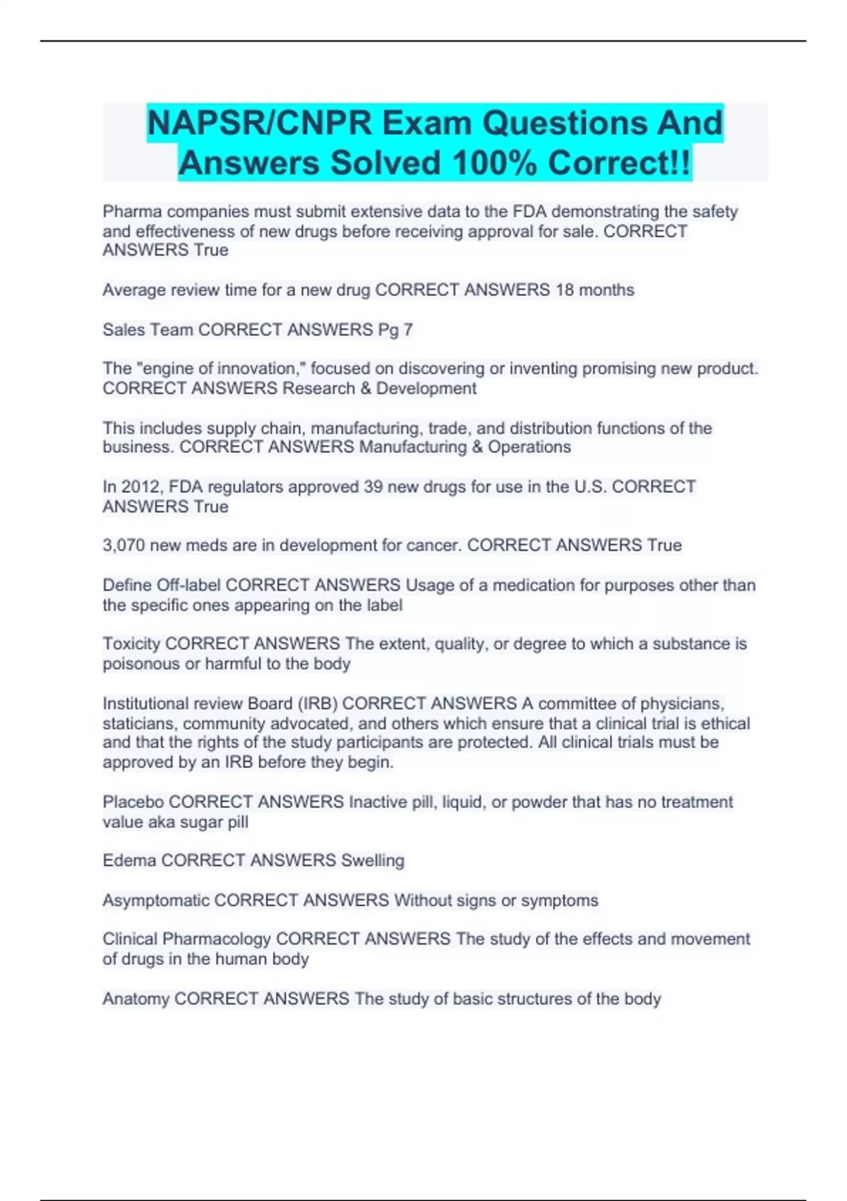 NAPSR/CNPR Exam Questions And Answers Solved 100% Correct!!
