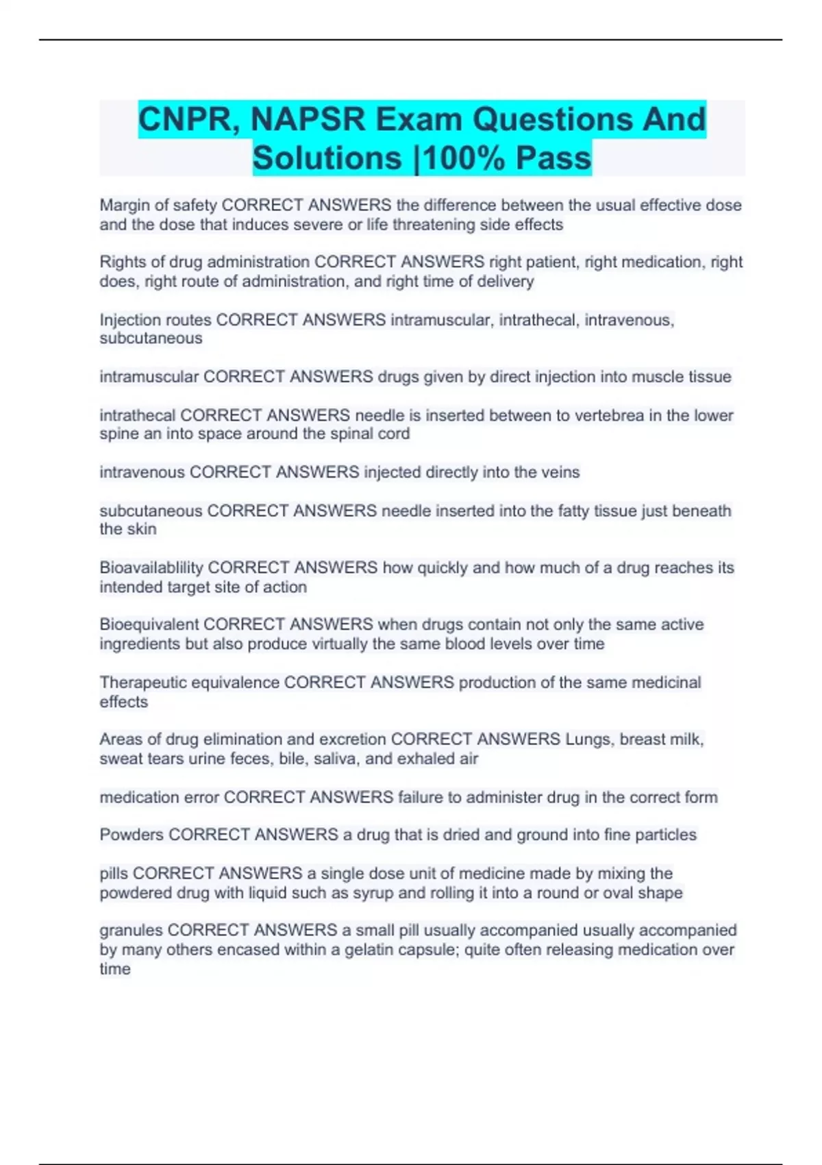 CNPR, NAPSR Exam Questions And Solutions |100% Pass