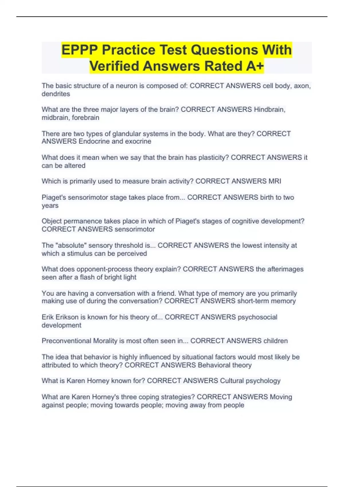 EPPP Practice Test Questions With Verified Answers Rated A+