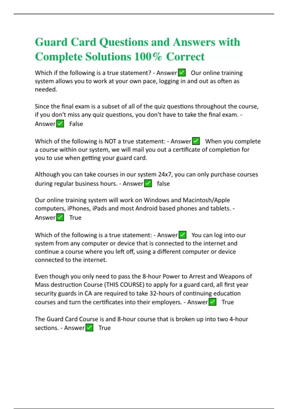guard card questions and answers with complete sol