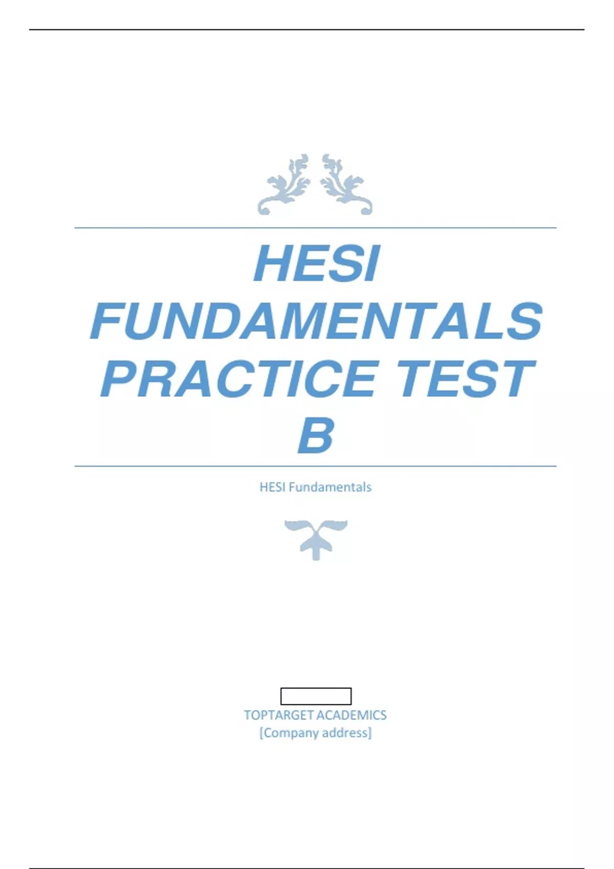 HESI Fundamentals Practice Test B 2023 What is the rationale for using the nursing process in planning care for clients? A. As a scientific process to identify nursing diagnoses of a clients' healthcare problems. B. To establish nursing theory that incorporates the biopsychosocial nature of humans. C. As a tool to organize thinking and clinical decision making about clients' healthcare needs. D. To promote the management of client care in collaboration with other healthcare professionals. (ANS-: C) What activity should the nurse use in the evaluation phase of the nursing process? A. Ask a client to evaluate the nursing care provided. B. Document the nursing care plan in the progress notes. C. Determine whether a client's health problems have been alleviated. D. Examine the effectiveness of nursing interventions toward meeting client outcomes. (ANS-: D Which statement is an example of a correctly written nursing diagnosis statement? A. Altered tissue perfusion related to congestive heart failure. B. Altered urinary elimination related to urinary tract infection. C. Risk for impaired tissue integrity related to client's refusal to turn. D. Ineffective coping related to response to positive biopsy test results. (ANS-: D What action by the nurse demonstrates culturally sensitive care? A. Asks permission before touching a client. B. Avoids questions about male-female relationships. C. Explains the differences between Western medical care and cultural folk remedies. D. Applies knowledge of a cultural group unless a client embraces Western customs. (ANS-: A A nurse is becoming increasingly frustrated by the family members' efforts to participate in the care of a hospitalized client. What action should the nurse implement to cope with these feelings of frustration? A. Suggest that other cultural practices be substituted by the family members. B. Examine one's own culturally based values, beliefs, attitudes, and practices. C. Explain to the family that multiple visitors are exhausting to the client. D. Allow the situation to continue until a family member's action may harm the client. (ANS-: B Which technique is most important for the nurse to implement when performing a physical assessment? A. A head-to-toe approach. B. The medical systems model. C. A consistent, systematic approach. D. An approach related to a nursing model. (ANS-: C A 73-year-old Hispanic client is seen at the community health clinic with a history of protein malnutrition. What information should the nurse obtain first? A. Amount of liquid protein supplements consumed daily. B. Foods and liquids consumed during the past 24 hours. C. Usual weekly intake of milk products and red meats. D. Grains and legume combinations used by the client. (ANS-: B The nurse formulates the nursing diagnosis of, "Ineffective health maintenance related to lack of motivation" for a client with Type 2 diabetes. Which finding supports this nursing diagnosis? A. Does not check capillary blood glucose as directed