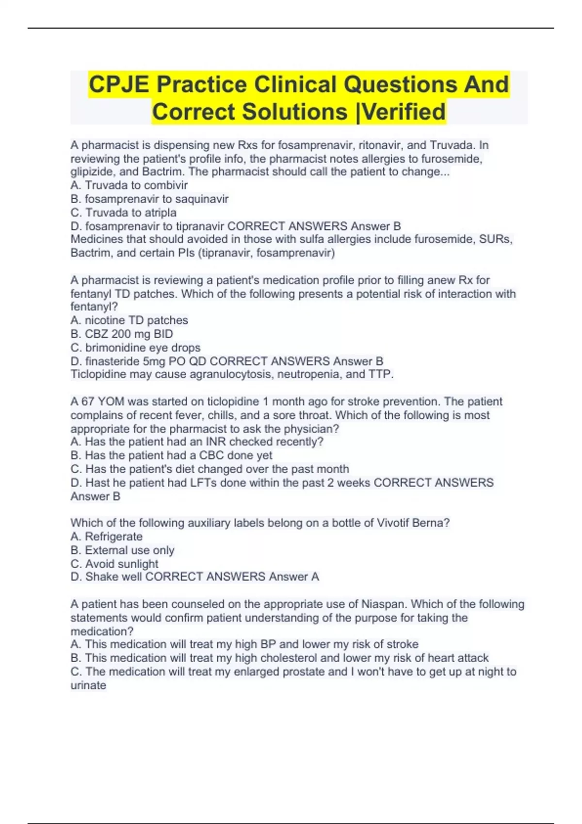 CPJE Practice Clinical Questions And Correct Solutions |Verified