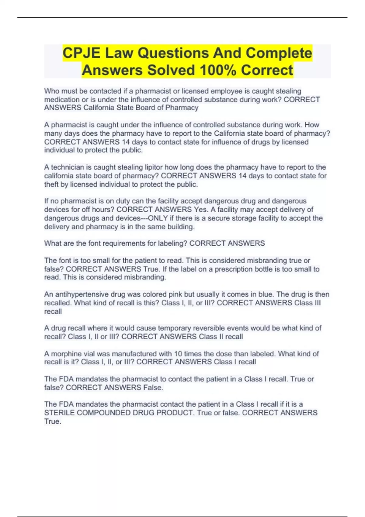CPJE Law Questions And Complete Answers Solved 100% Correct
