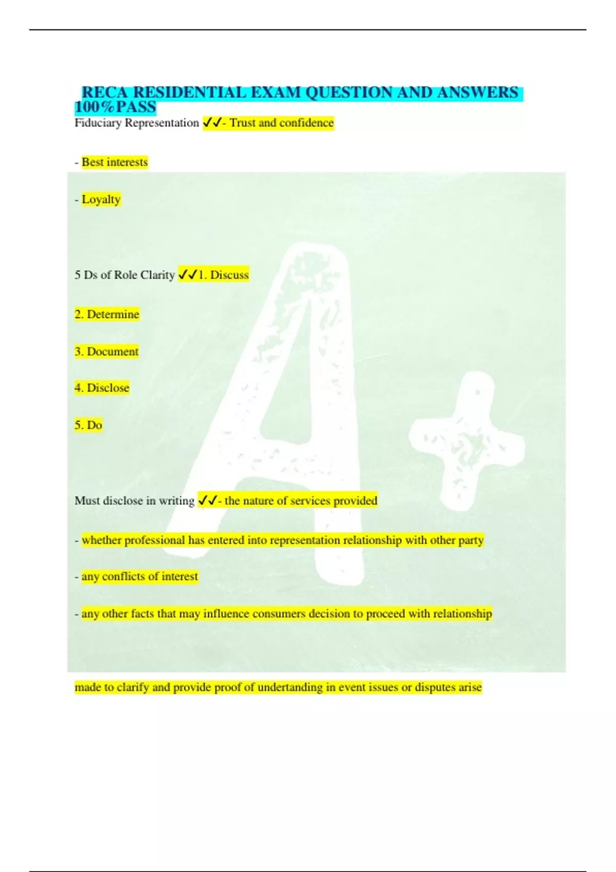 RECA RESIDENTIAL EXAM QUESTION AND ANSWERS 100%PASS