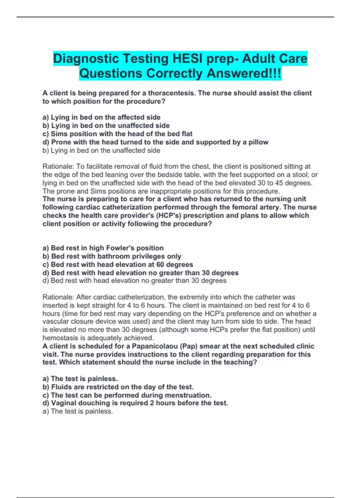 A client is scheduled for a Papanicolaou (Pap) smear at the next scheduled clinic