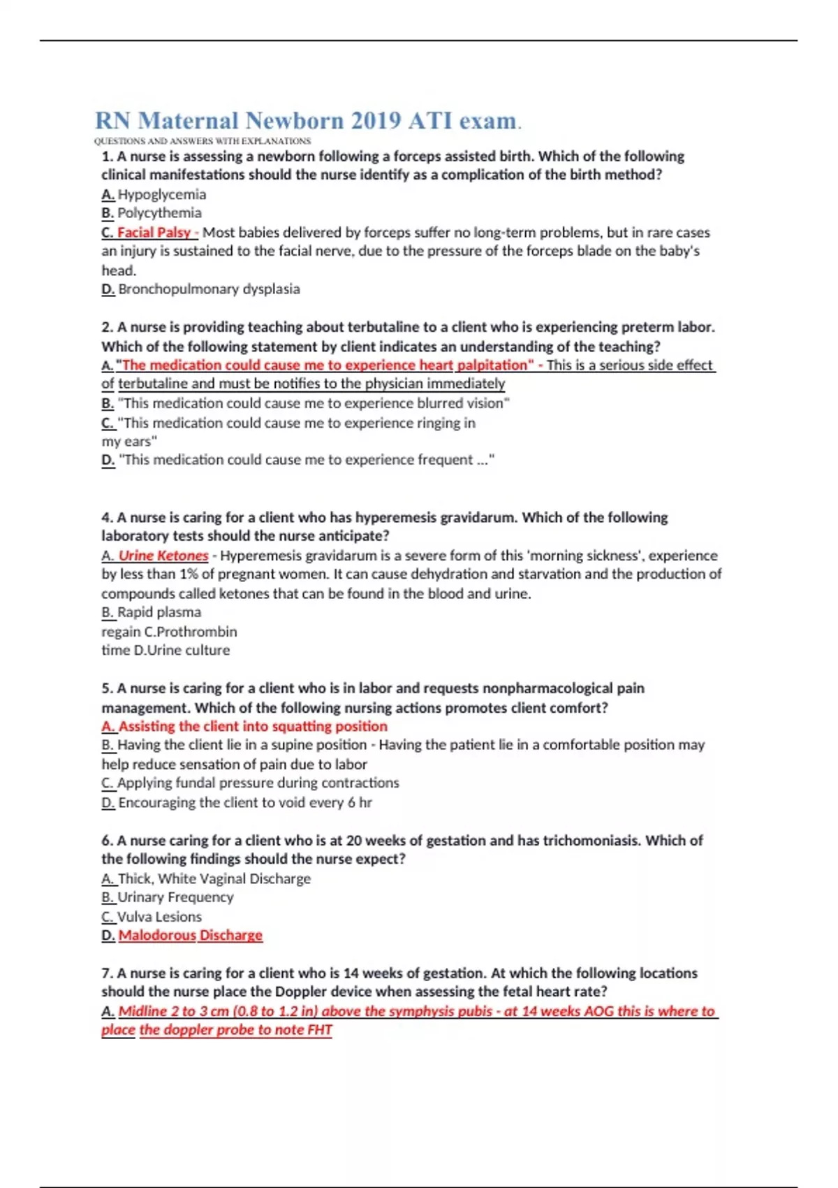 RN Maternal Newborn 2019 ATI exam. QUESTIONS AND ANSWERS WITH EXPLANATIONS
