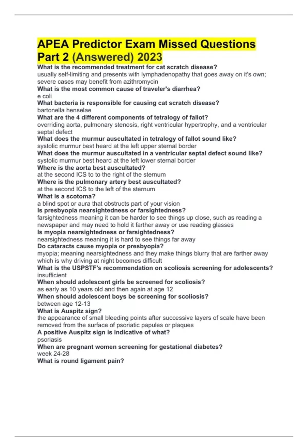 APEA Predictor Exam Missed Questions Part 2 (Answered) 2023