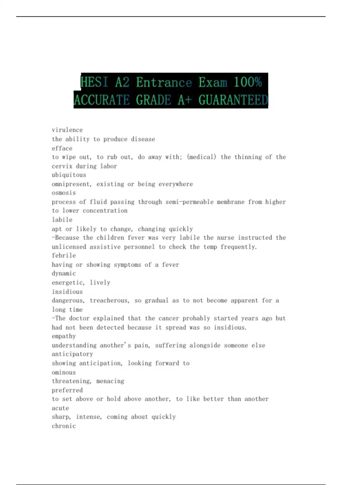 HESI A2 Entrance Exam 100% ACCURATE GRADE A+ GUARANTEED