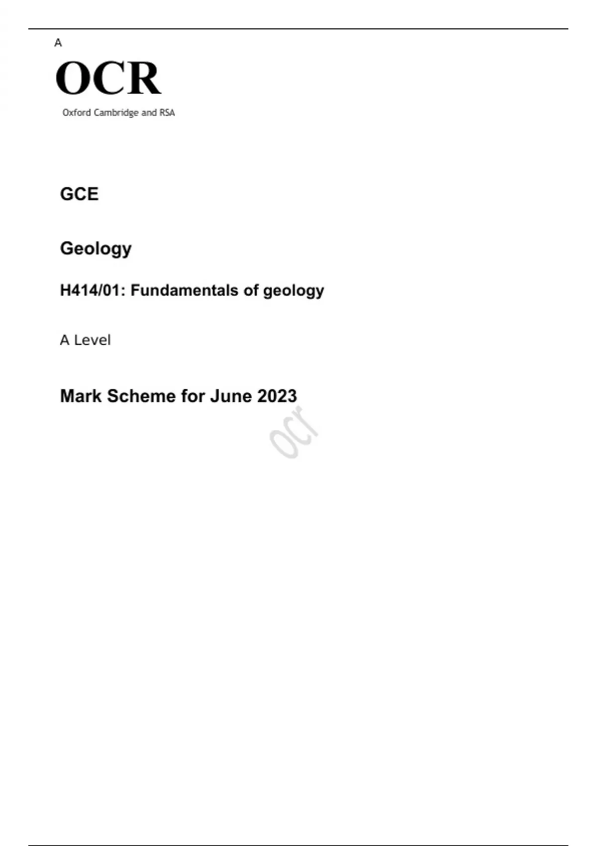 OCR A Level Geology H414/01 JUNE 2023 MARK SCHEME: Fundamentals of geology