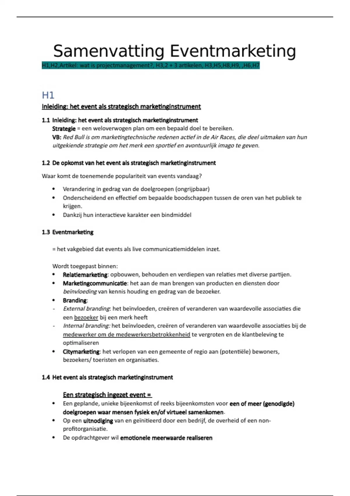 Samenvatting Het event als strategisch marketinginstrument - Eventmarketing