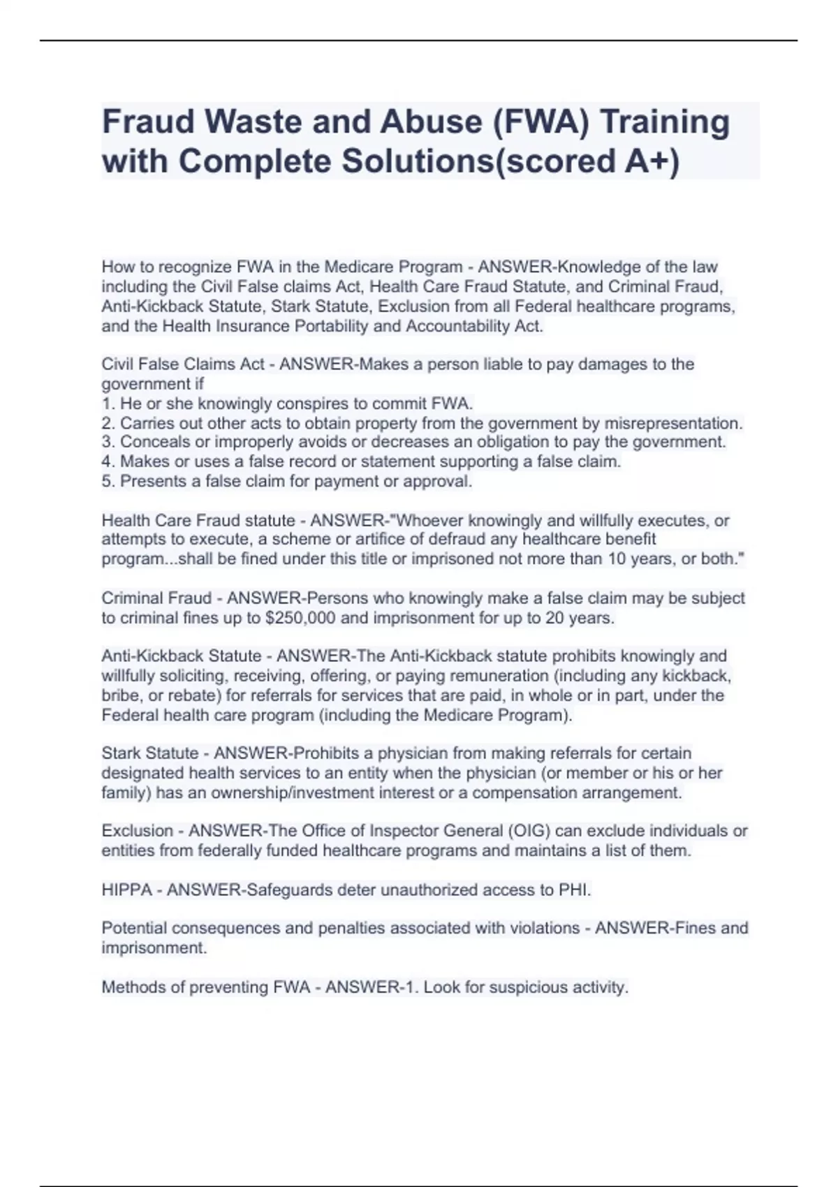 Fraud Waste and Abuse (FWA) Training with Complete Solutions(scored A+)